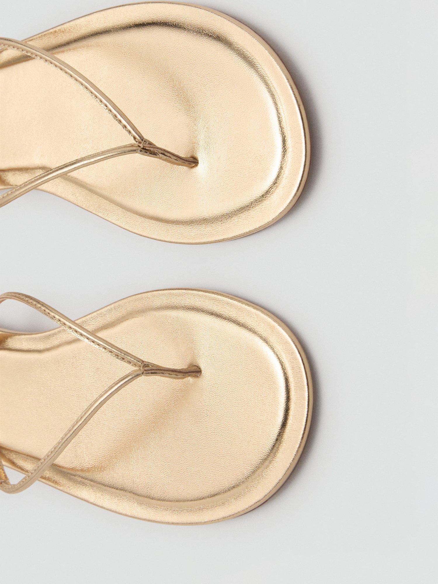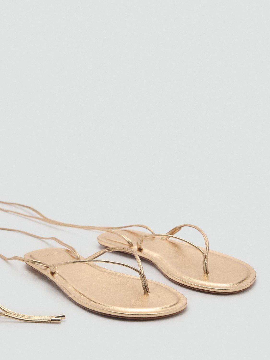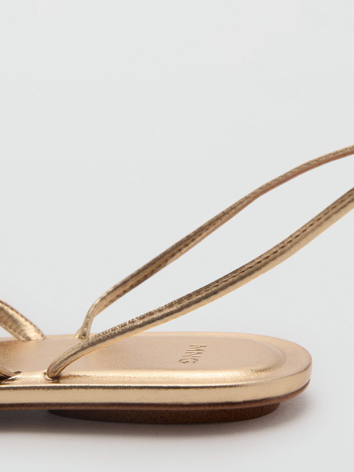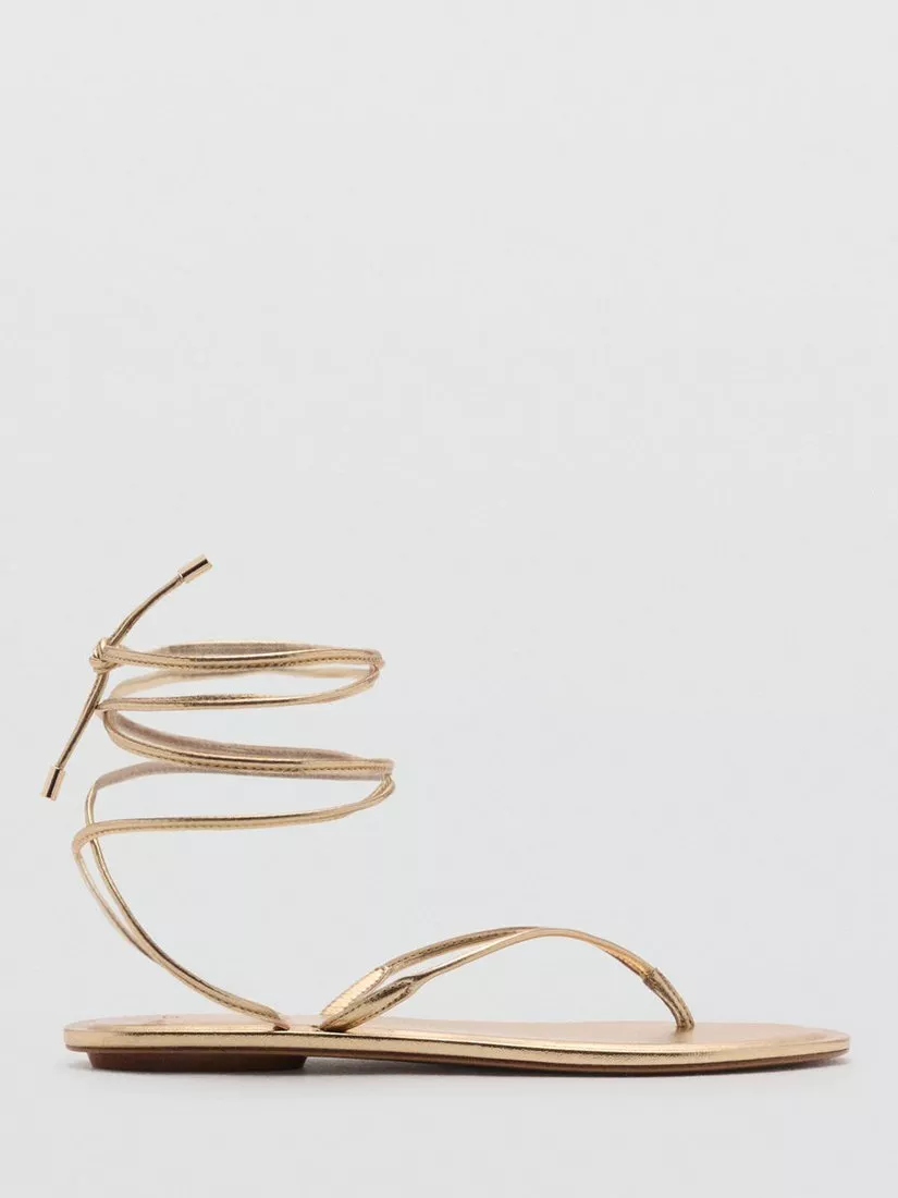 Step into summer with these dazzling gold strappy sandals from Mango. Perfect for casual occasions or warm days, these adjustable sandals feature a metallic design and comfortable flat soles, making them the ideal addition to your wardrobe.