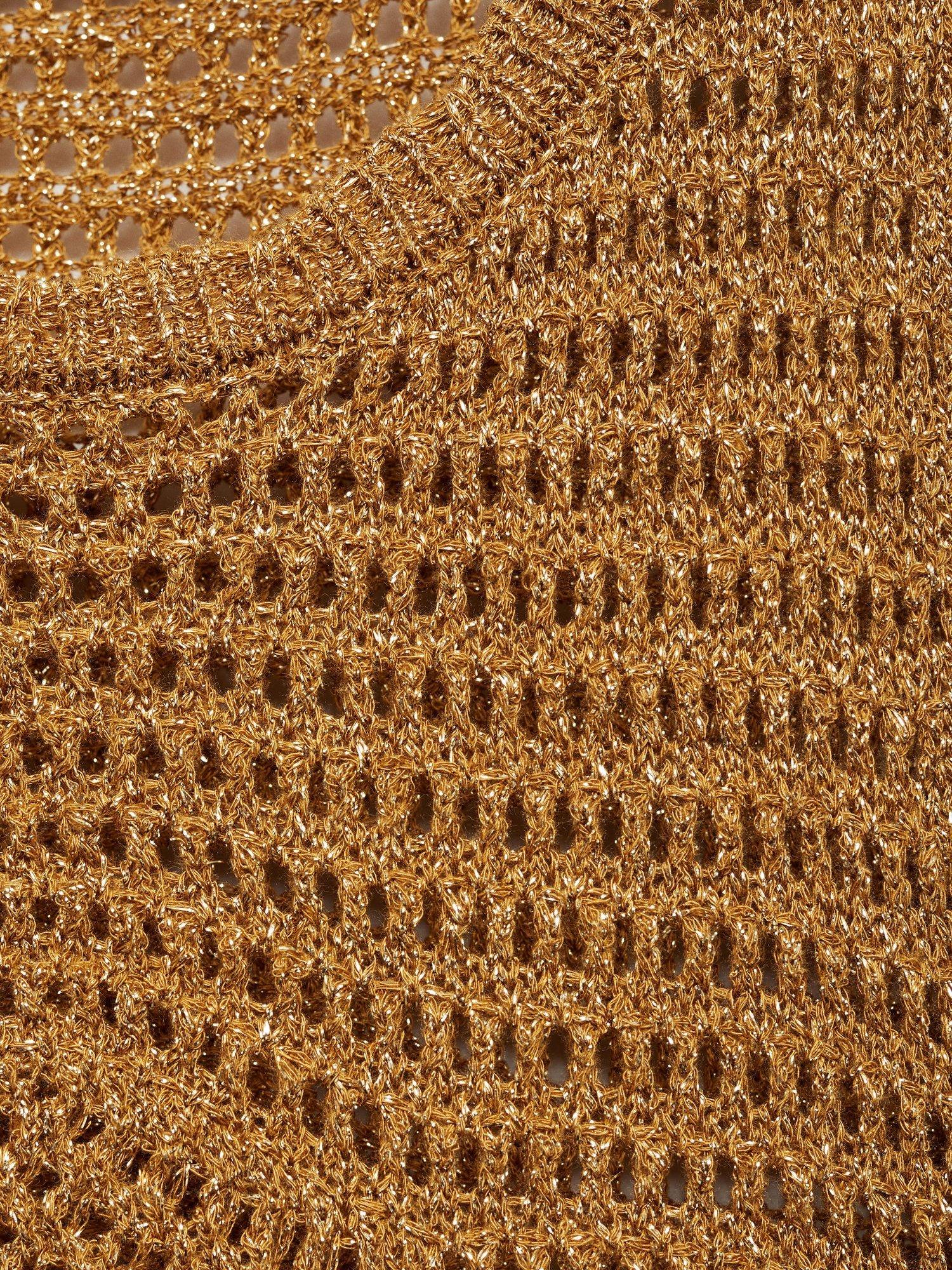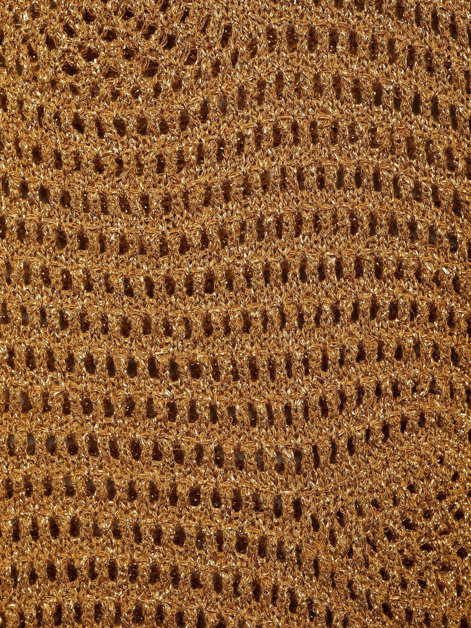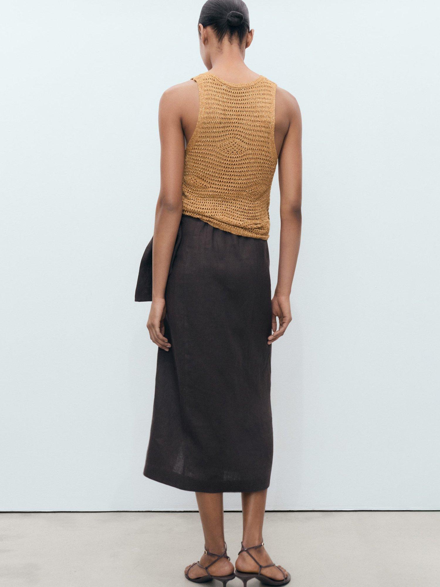 Mango’s sleeveless open knit tank top shines with a subtle metallic finish, adding energy to your everyday style. The soft viscose blend feels great all day, while the round neck keeps it effortlessly smart.