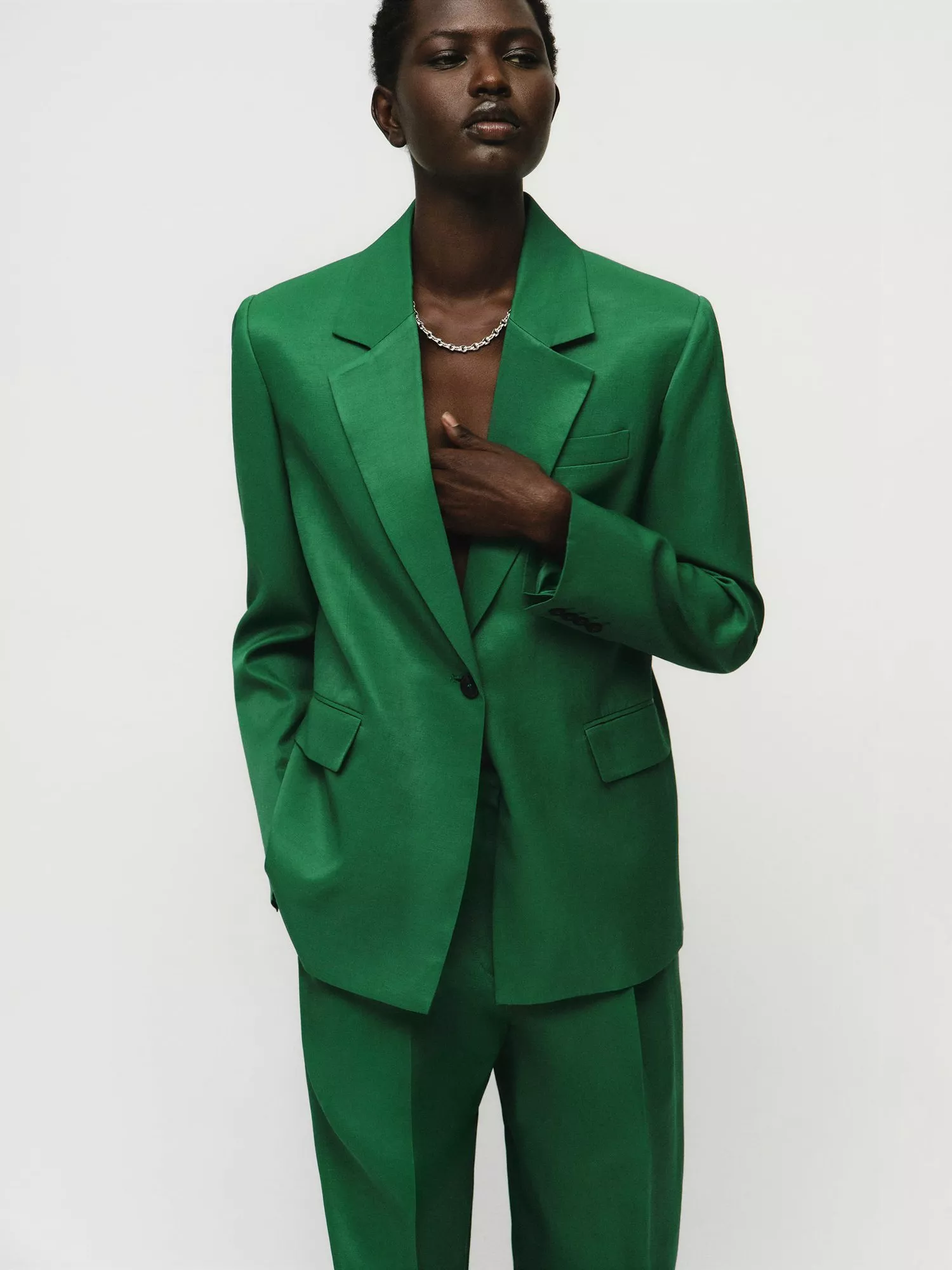 This single-breasted blazer, crafted in a linen blend with a satin finish for easy comfort. Designed for sharp style, it pairs perfectly with your go-to pieces.