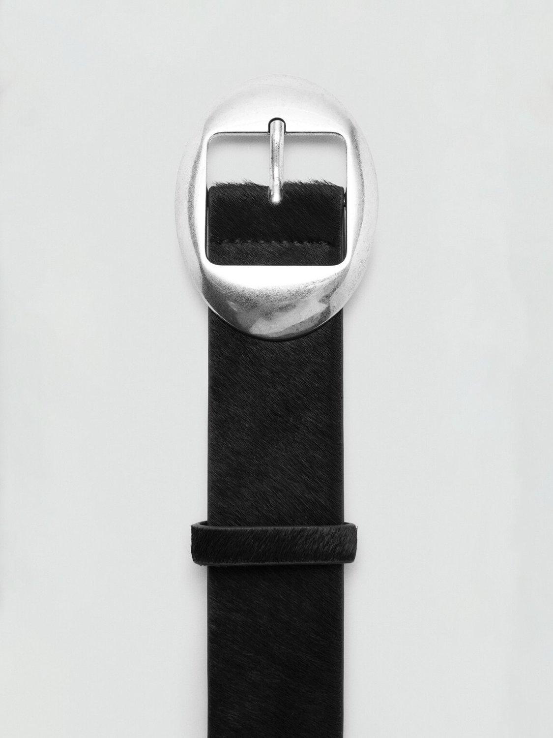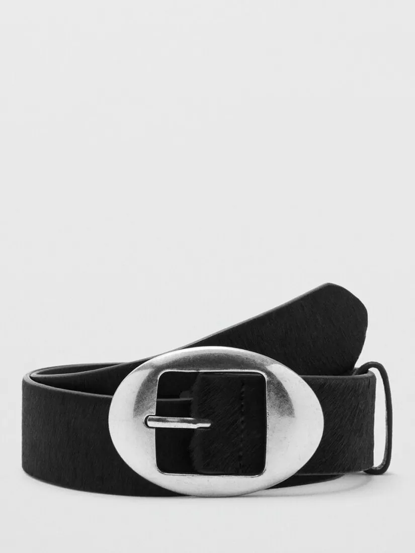 MangoOval Buckle Pure Leather Belt, Black
