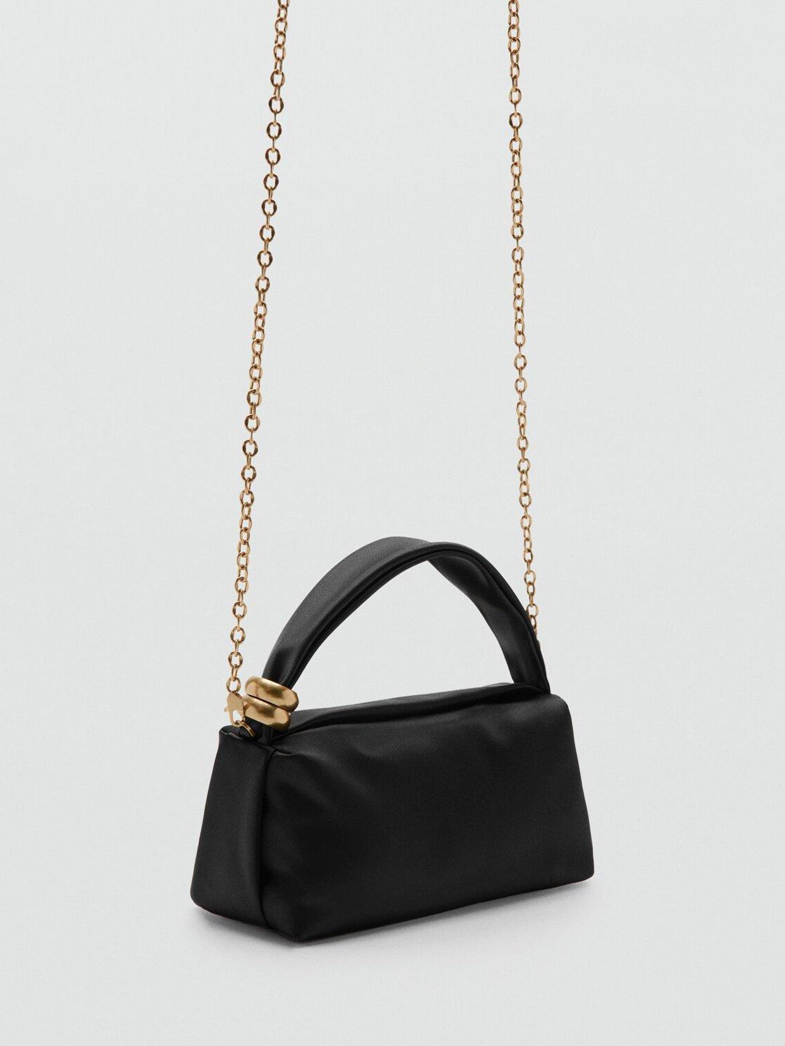 A refined padded evening bag by Mango. With an easy zip fastening and a gleaming long chain strap, it's complete with a polished hardware detailed top handle.