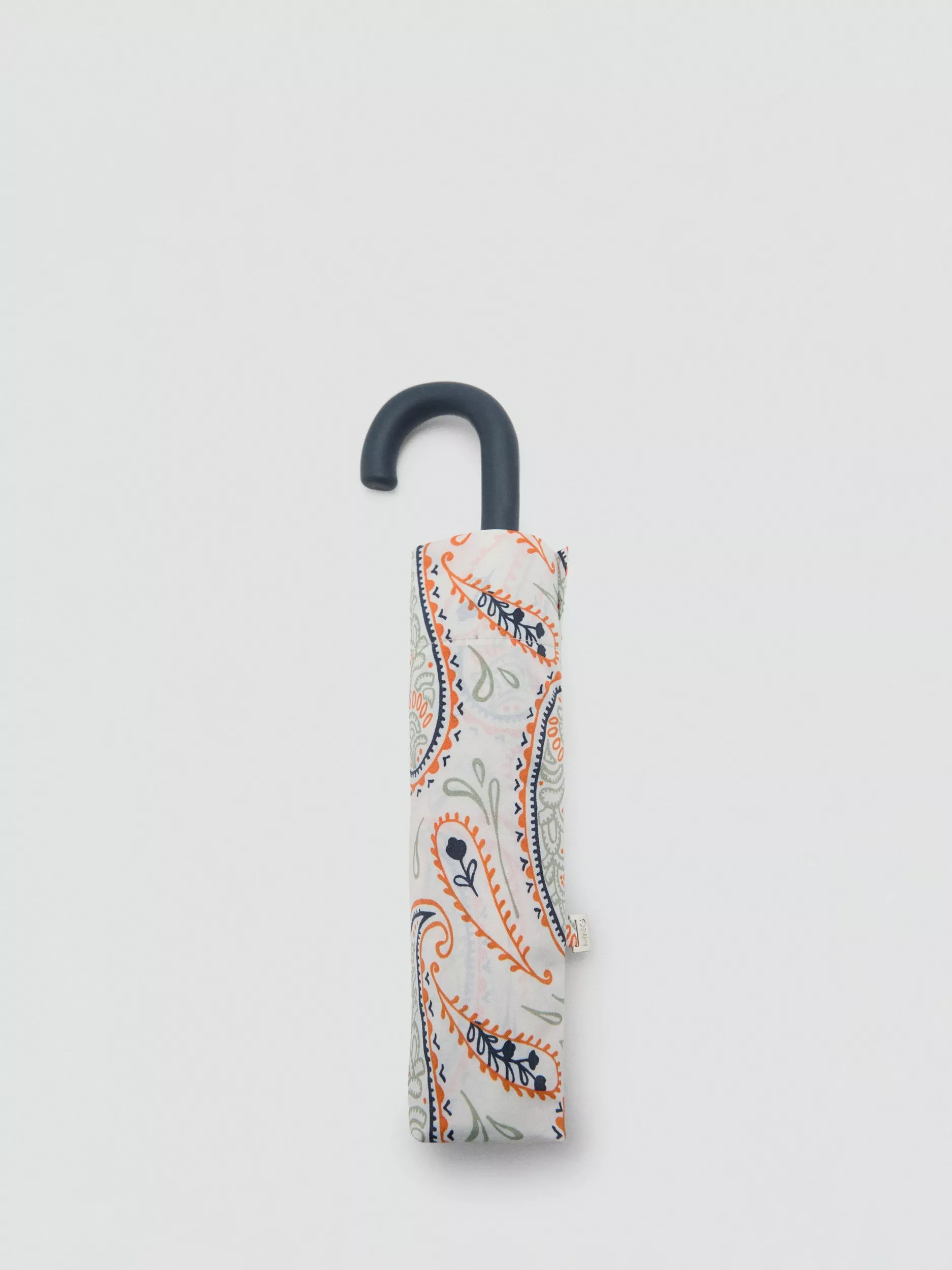 Stay stylishly dry with a Mango Paisley Pocket Umbrella. Its foldable design makes it perfectly portable, while the classic paisley print adds a touch of elegance to any rainy day.