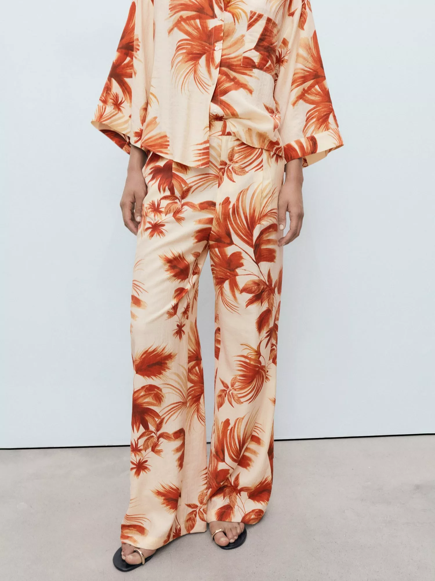 Expertly tailored to perfection, these trousers are cut to sit mid rise, with a leafy print and hems that fall to a regular length.