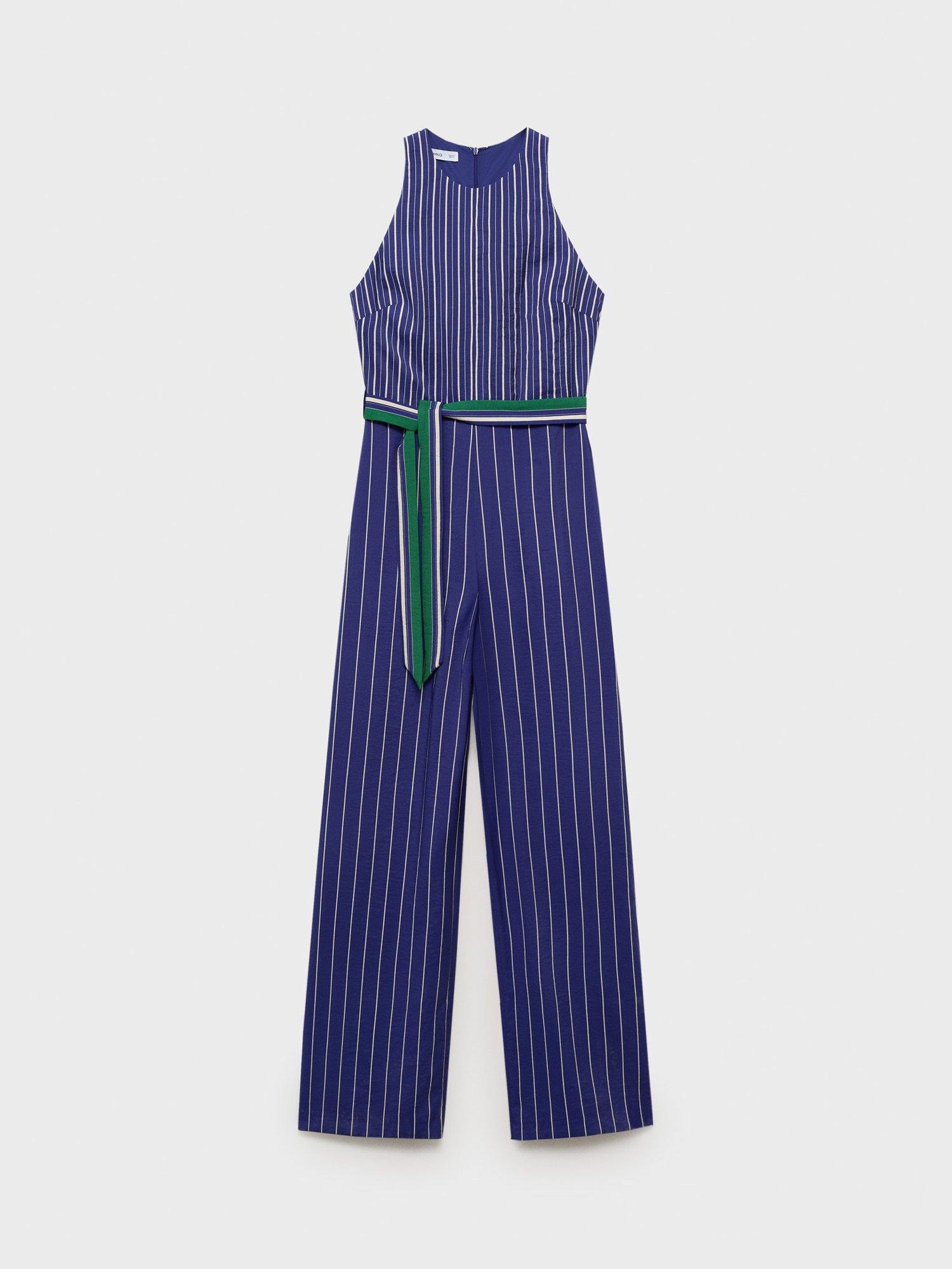 MangoPalvin Stripe Belted Jumpsuit, Blue/Multi
