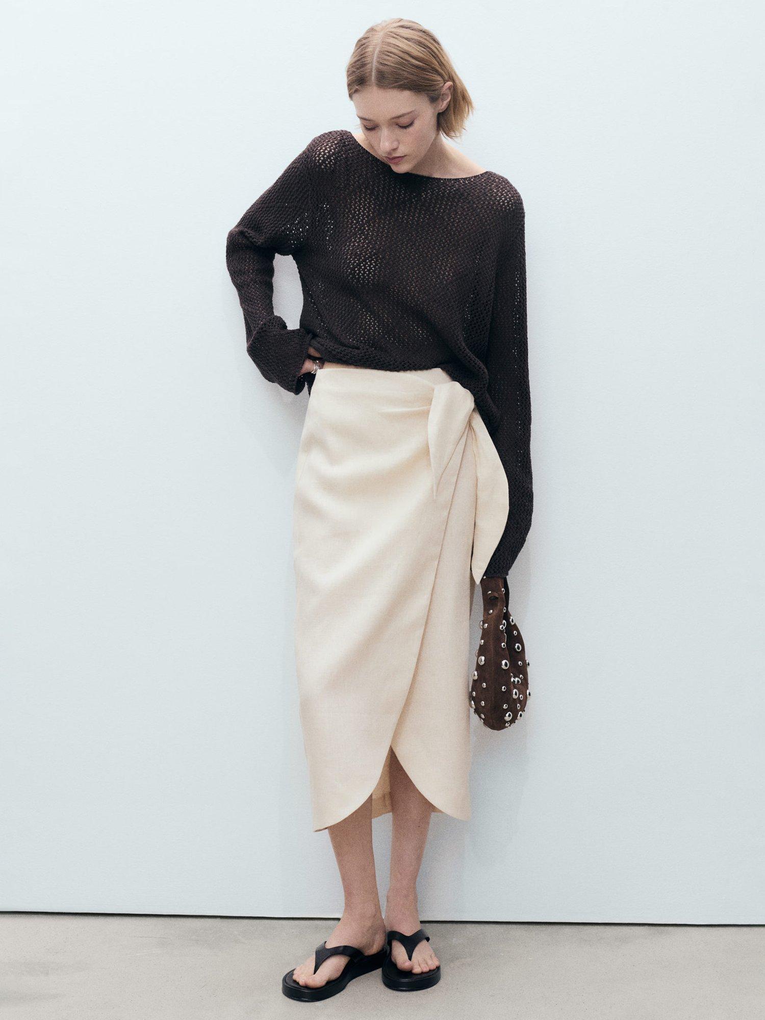 Wrapping around the body with enviable ease, this midi skirt by Mango comes without pattern or print so you can set your imagination and creativity free when it comes to accessorising.
