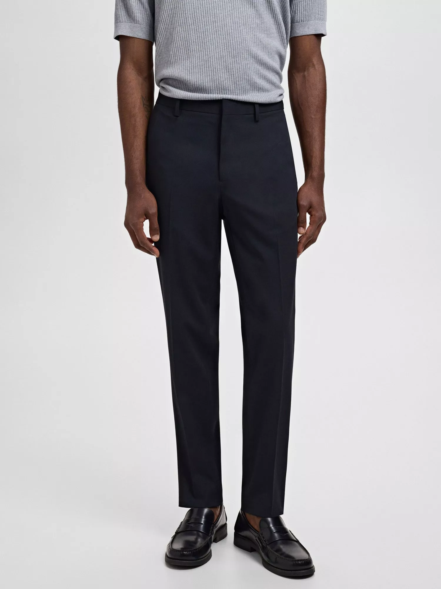 A masterclass in everyday tailoring, these slim fit trousers from Mango are built with comfort in mind thanks to their blended composition. With belt loops, side pockets and a zipped front closure.