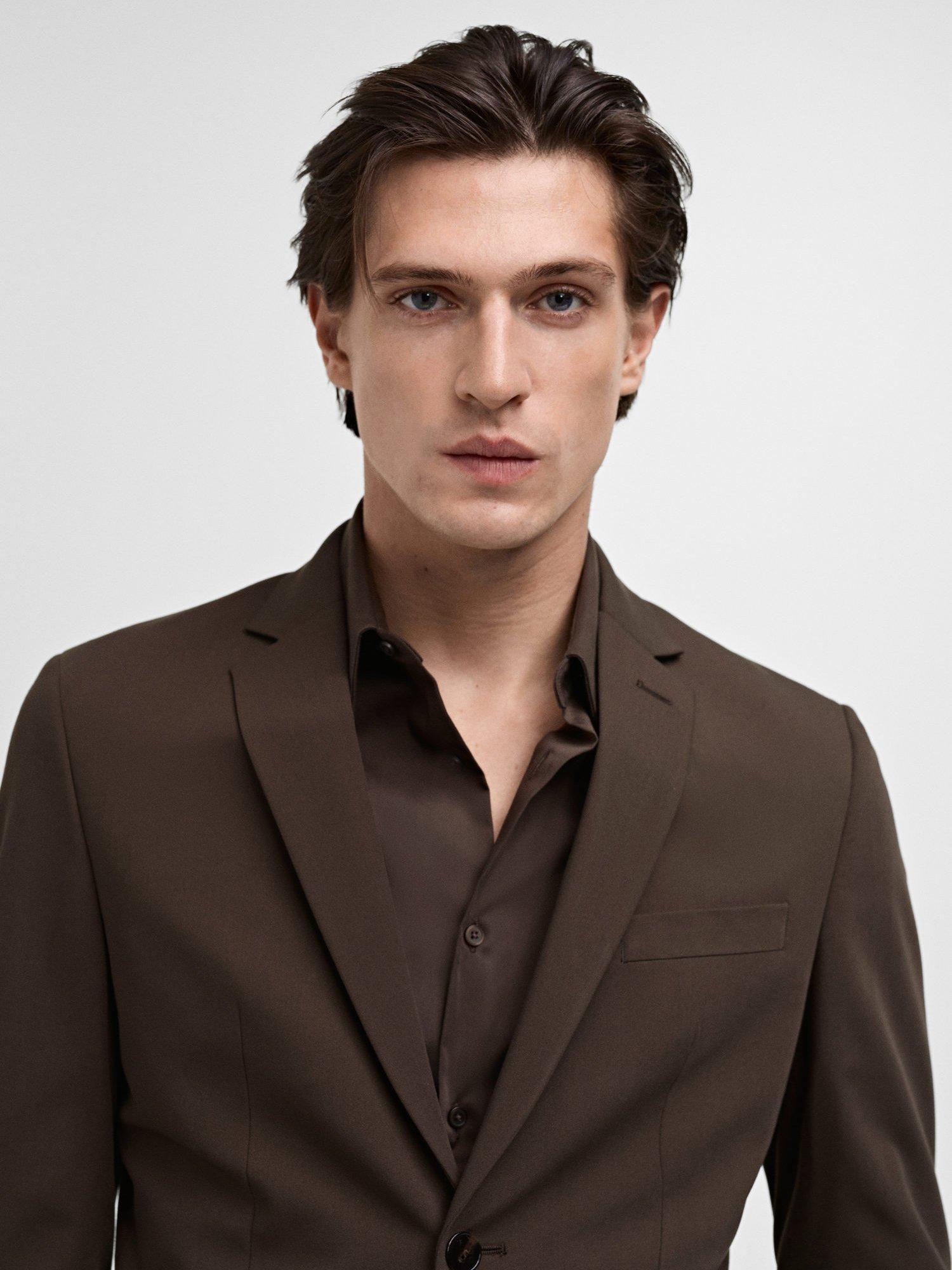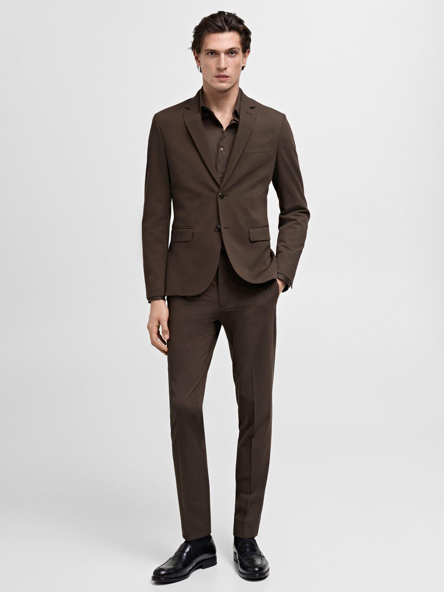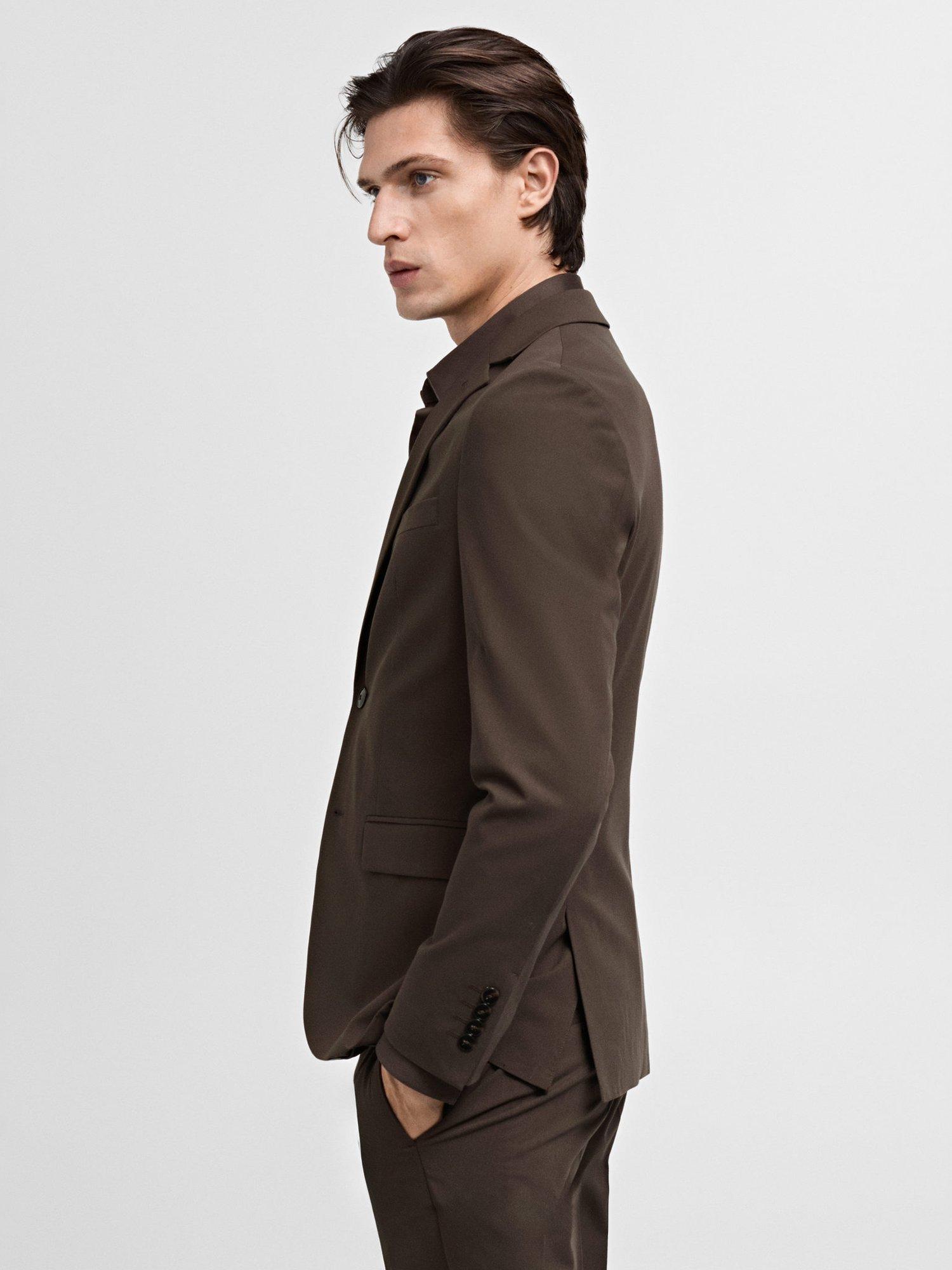 Tailored to perfection, this single-breasted blazer from Mango is made from a comfort stretch fabric that's comfortable to wear. The Super Slim model is the tightest fit you will find in Mango's suit collection. It has been designed in different colors and prints to wear at different times of the day and adjust to your personality. Ideal for informal events and celebrations.