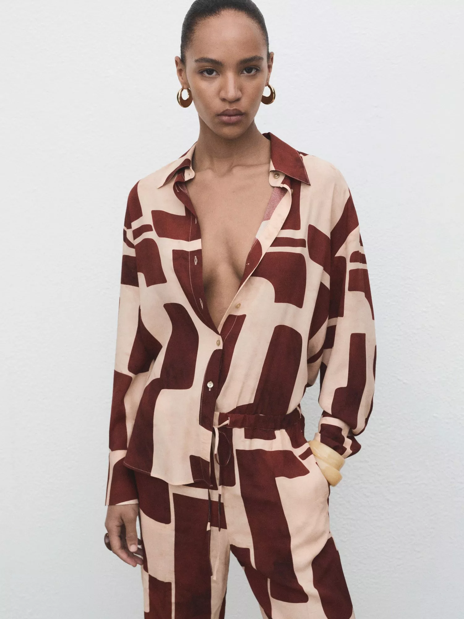 Refresh your daily look with this smart geometric blouse from Mango. Its soft viscose and classic collar offer comfort for every occasion.