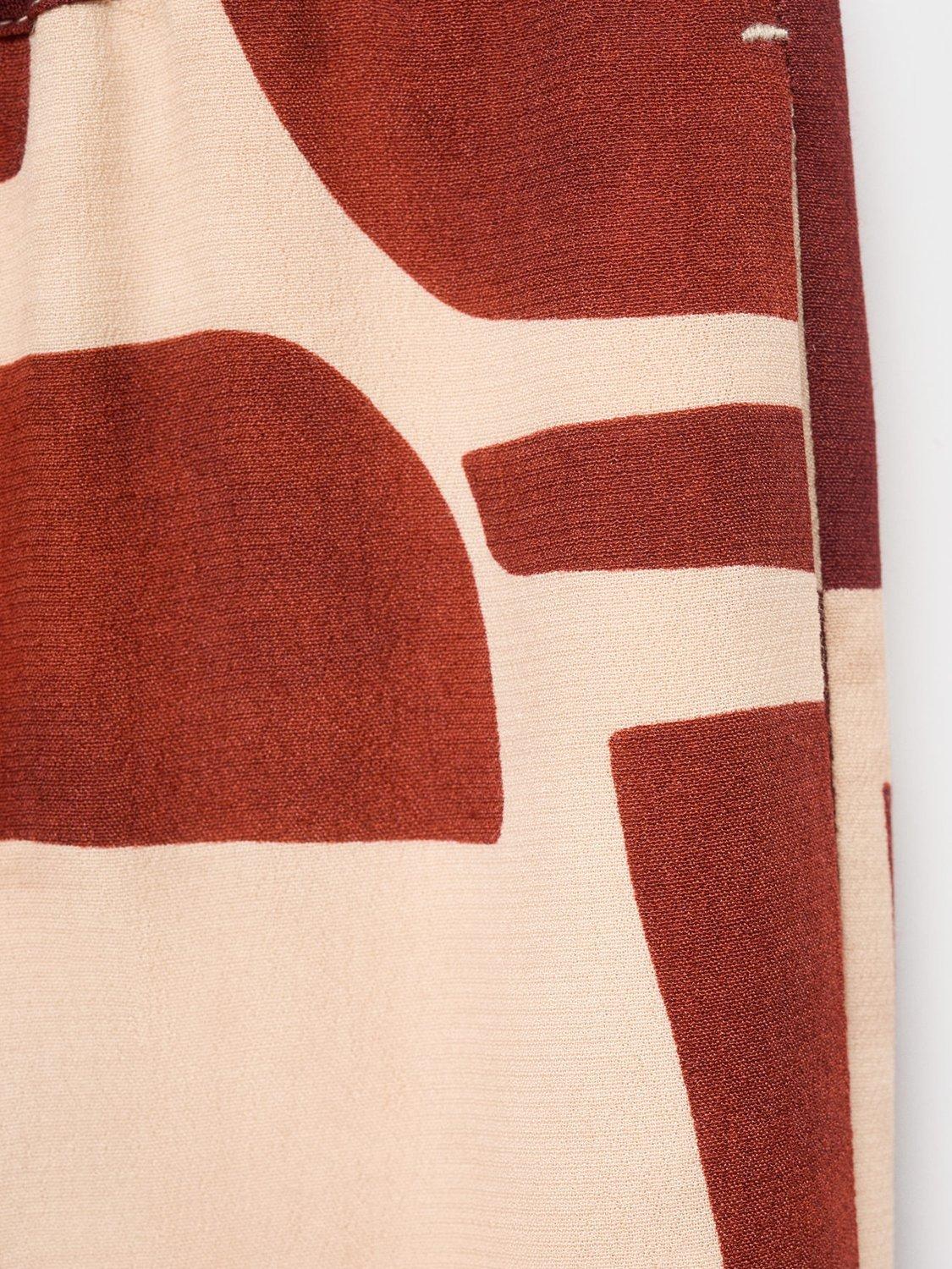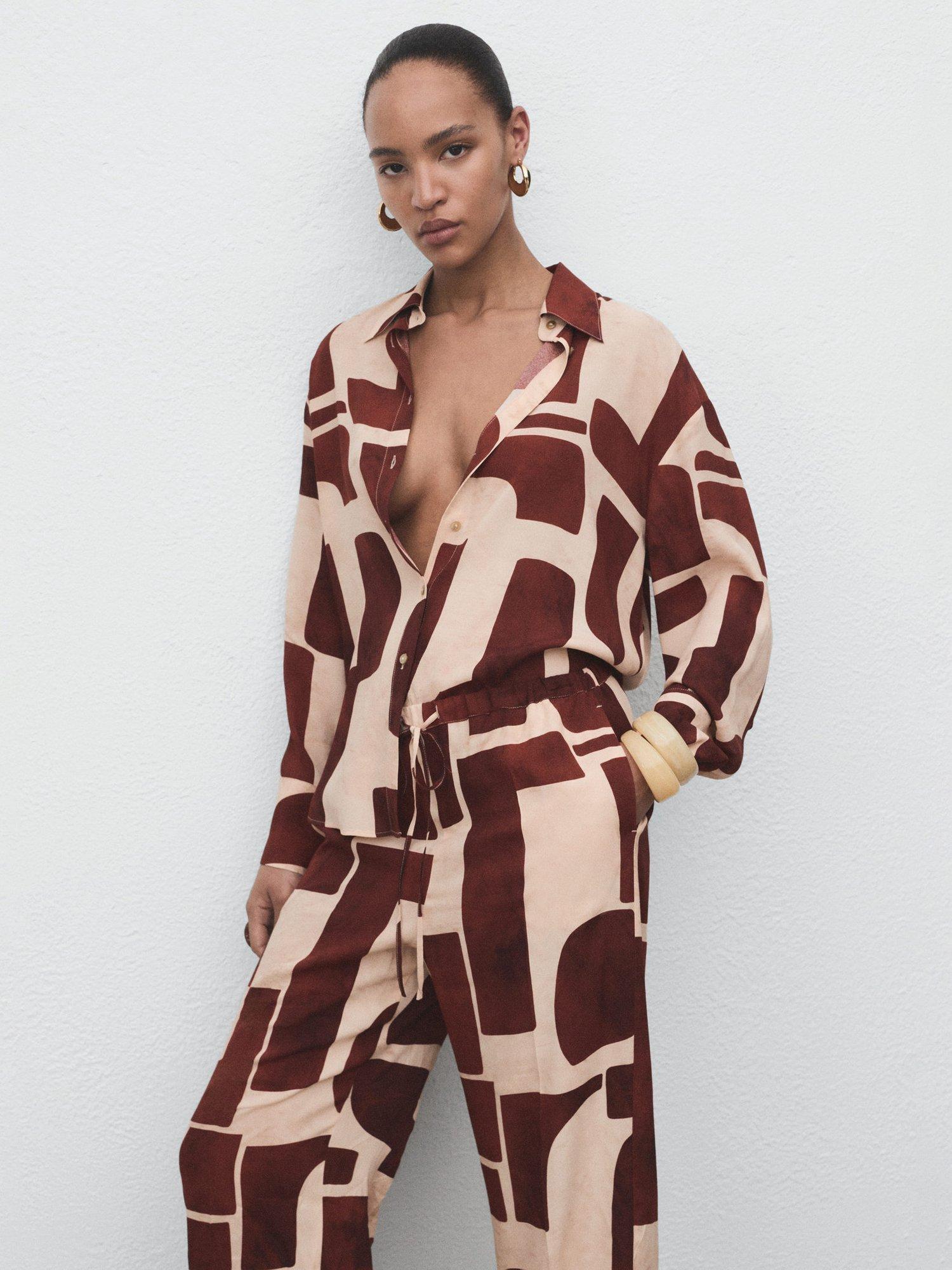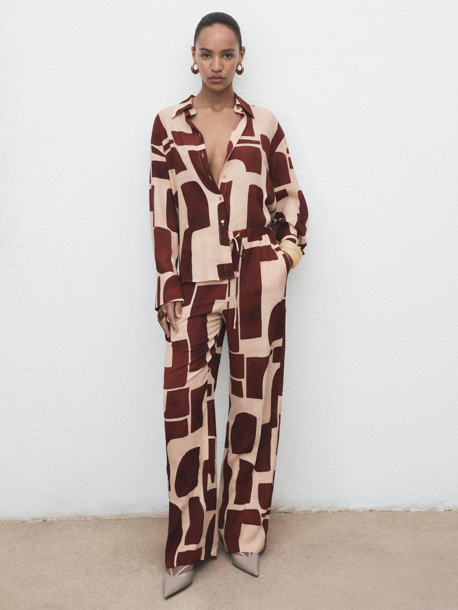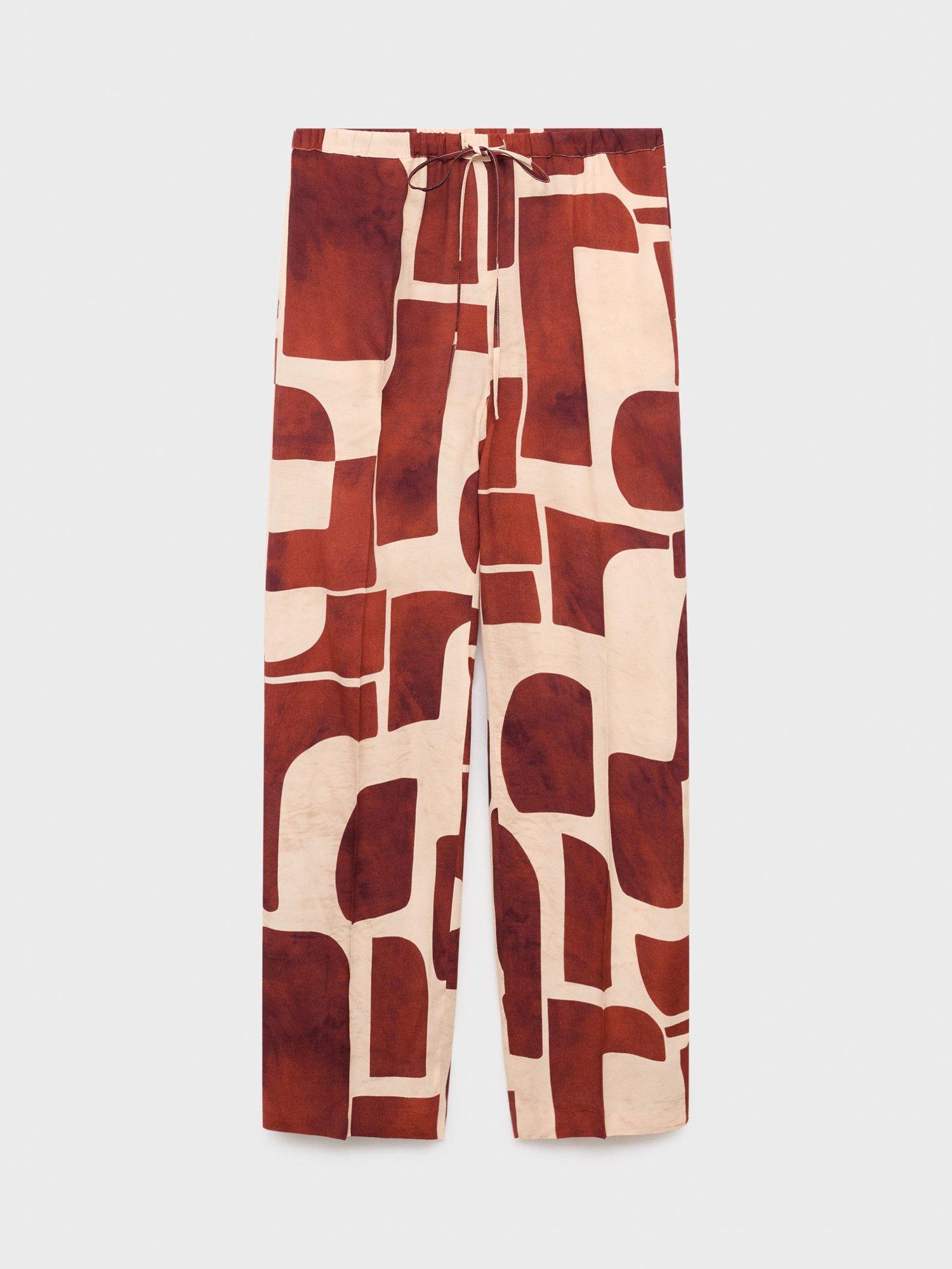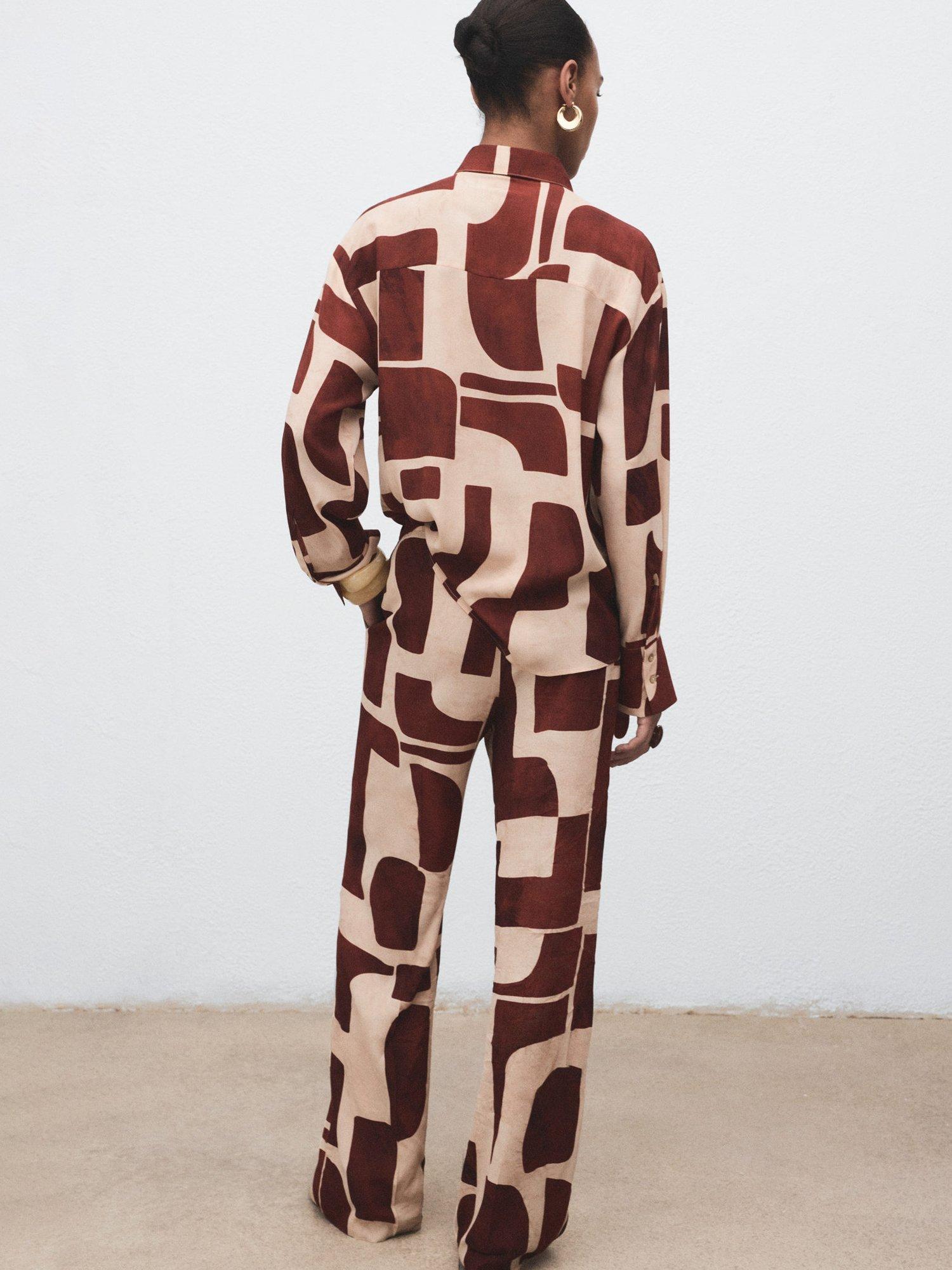 A pair of clean lined, no-nonsense straight-leg trousers by Mango. They feature a mid rise with a zip fly, geometric print and regular length hems.