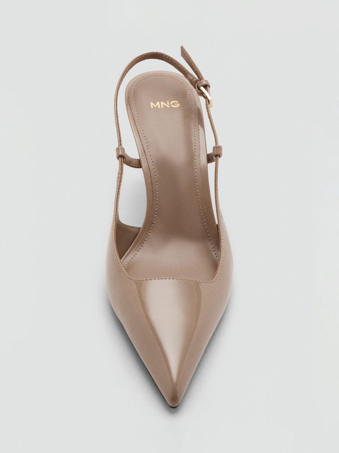 Heeled slingback sandals by Mango, elevated by an 8cm stiletto and pointed toe for sharp, smart-season looks. Patent finish catches the light, while an adjustable buckle ensures a secure fit at any event on your calendar.