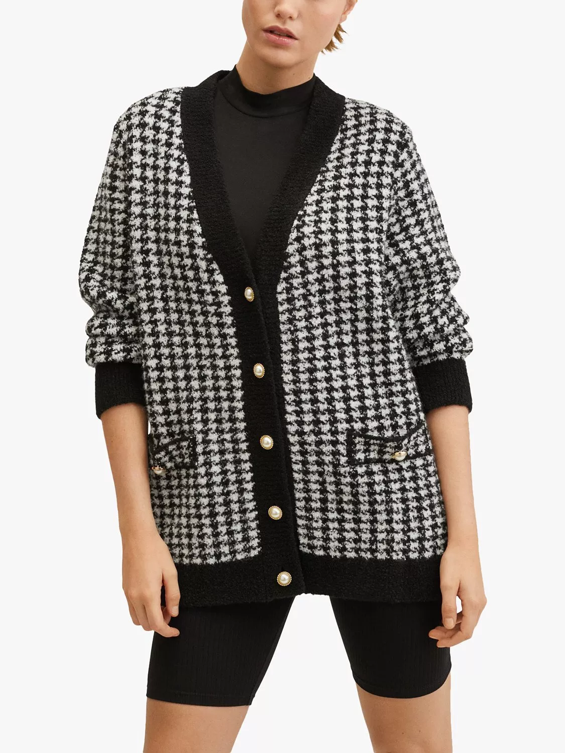 A handy layering piece for when the temperature cools, this cardigan from Mango draws upon classic styles with its dogtooth pattern, faux pearl buttons and is made with long-lasting fabric for longevity of wear.