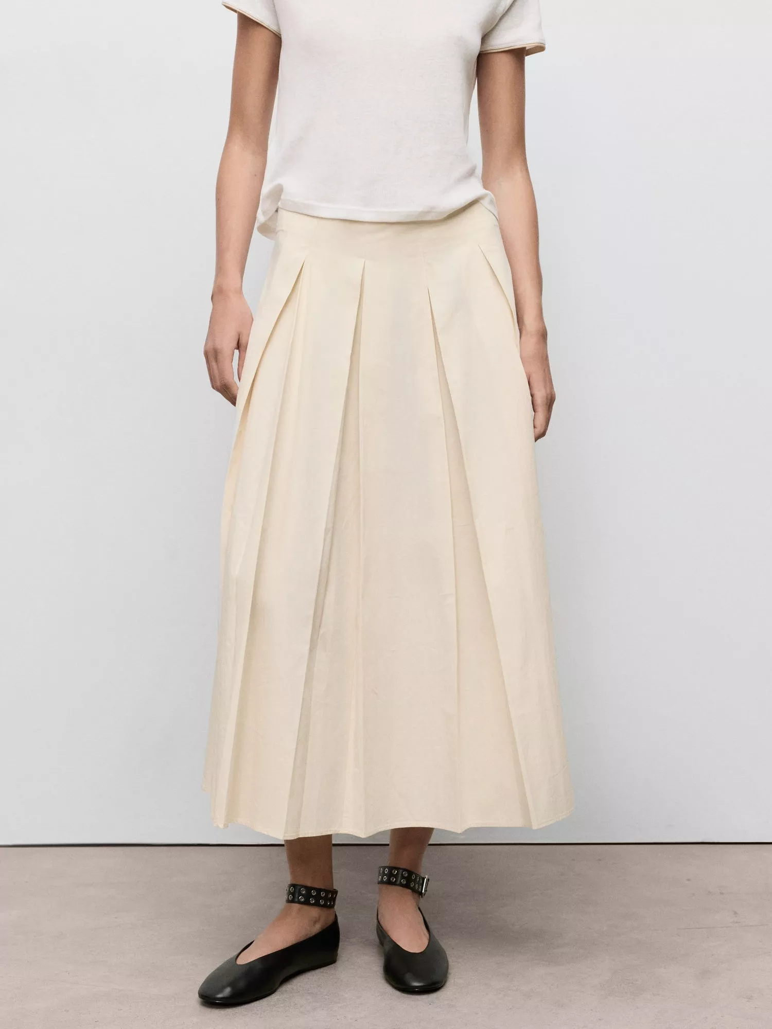Sweeping to mid-length, slip into this pleated A-line skirt by Mango. Formed from cotton, it's secured with a zip closure.