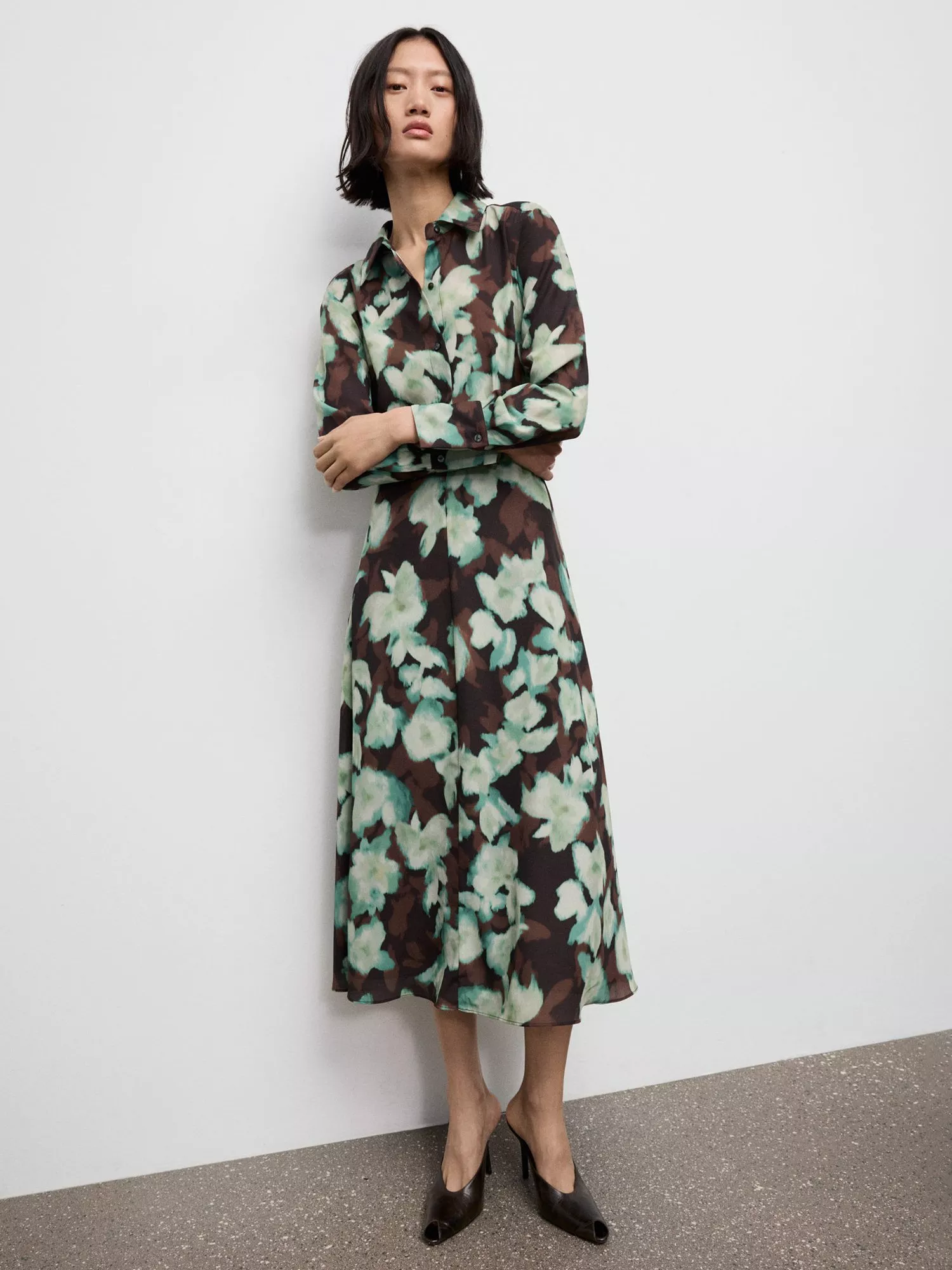 Blending sharp design with a relaxed fit, this midi shirt dress brings fresh energy to your workdays or special events. With a smart collar and abstract floral print, the belt subtly shapes as you wish.