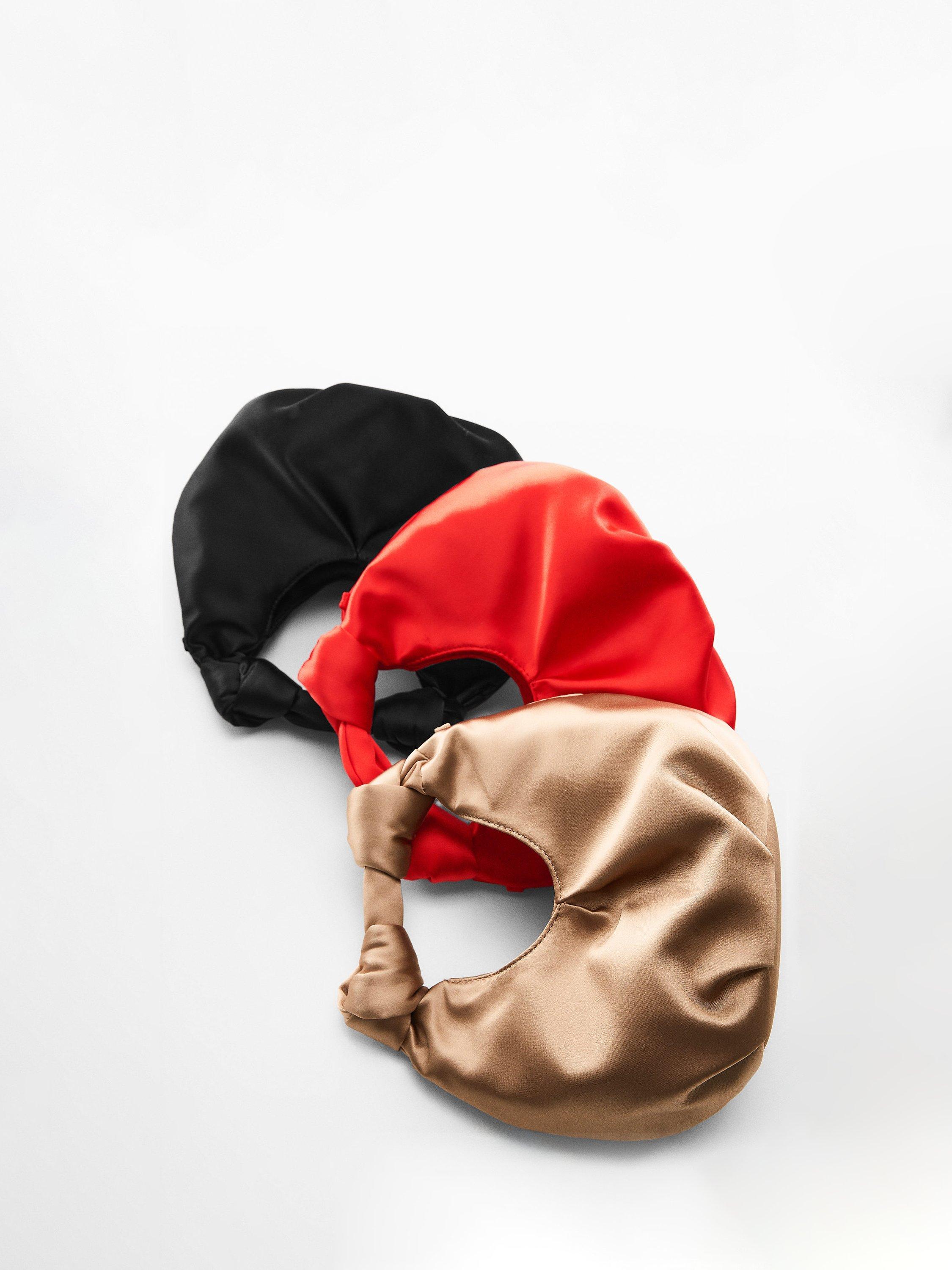 Created from satin and with a multiway strap for flexibility of wear, it fastens with a magnetic closure.