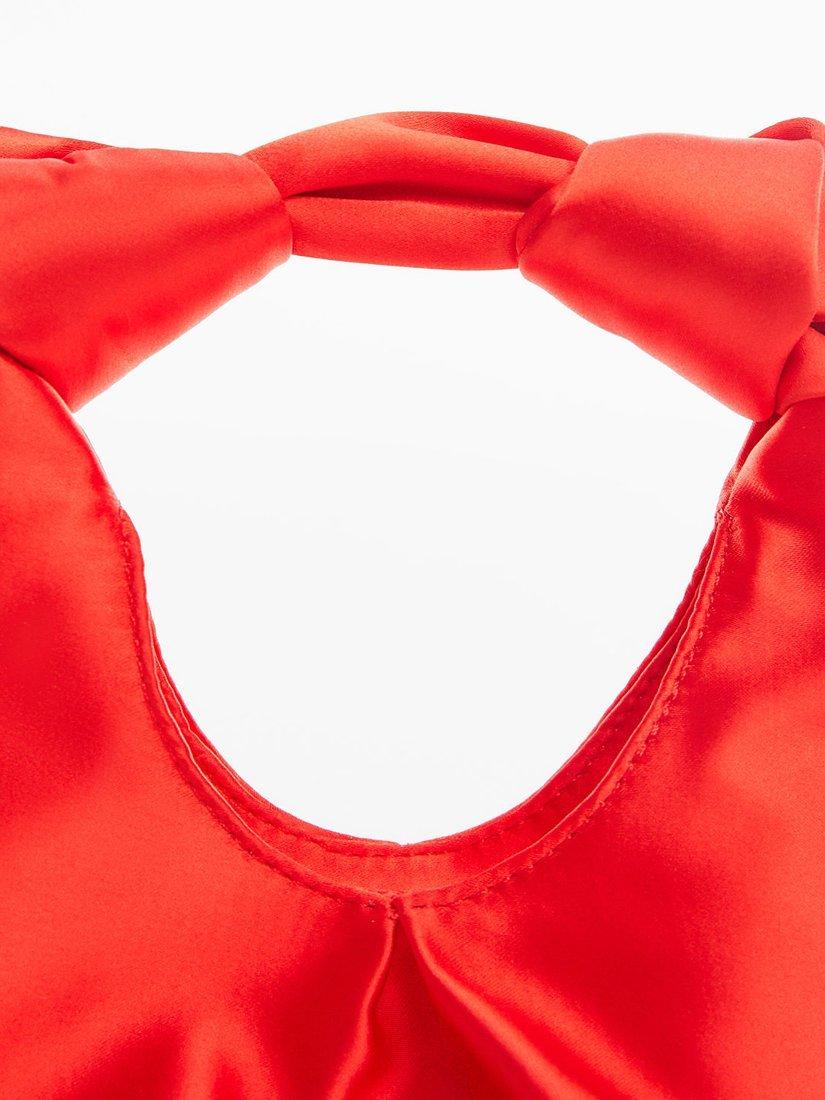 Created from satin and with a multiway strap for flexibility of wear, it fastens with a magnetic closure.