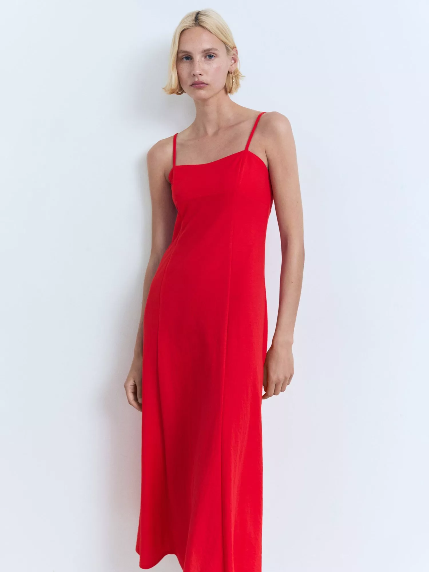 With clean, simple lines in a straight silhouette, this midi dress from Mango is dreamt up from a whisper-weight viscose blend. With a sweetheart neckline and straps, it features a tie to the back.