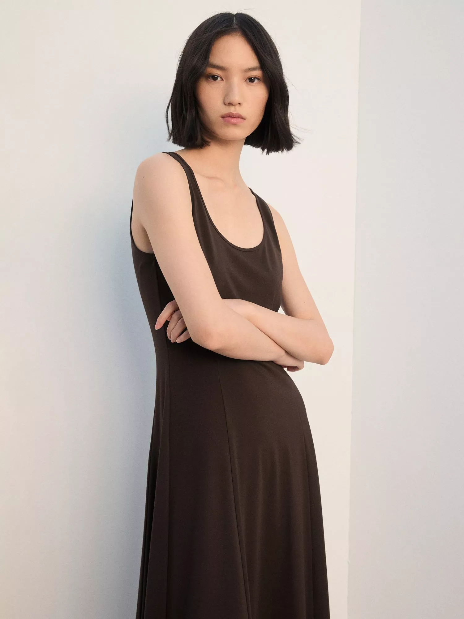 Mango midi dress. The sleeveless A-line shape and scoop neck make it easy to style for any day. Soft, lightweight fabric keeps you comfortable, so you can focus on what matters.