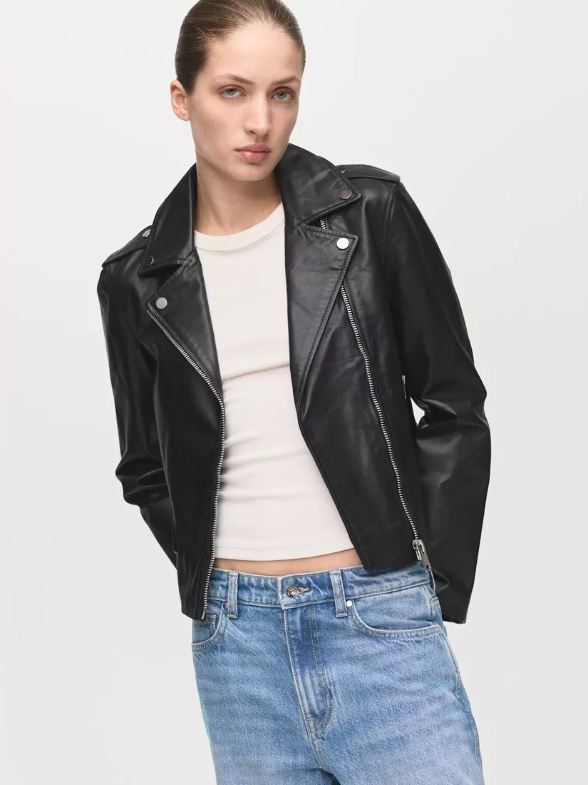 A classic biker jacket from Mango, made in pure leather. Designed for comfort and edge, it layers easily over your everyday outfits.