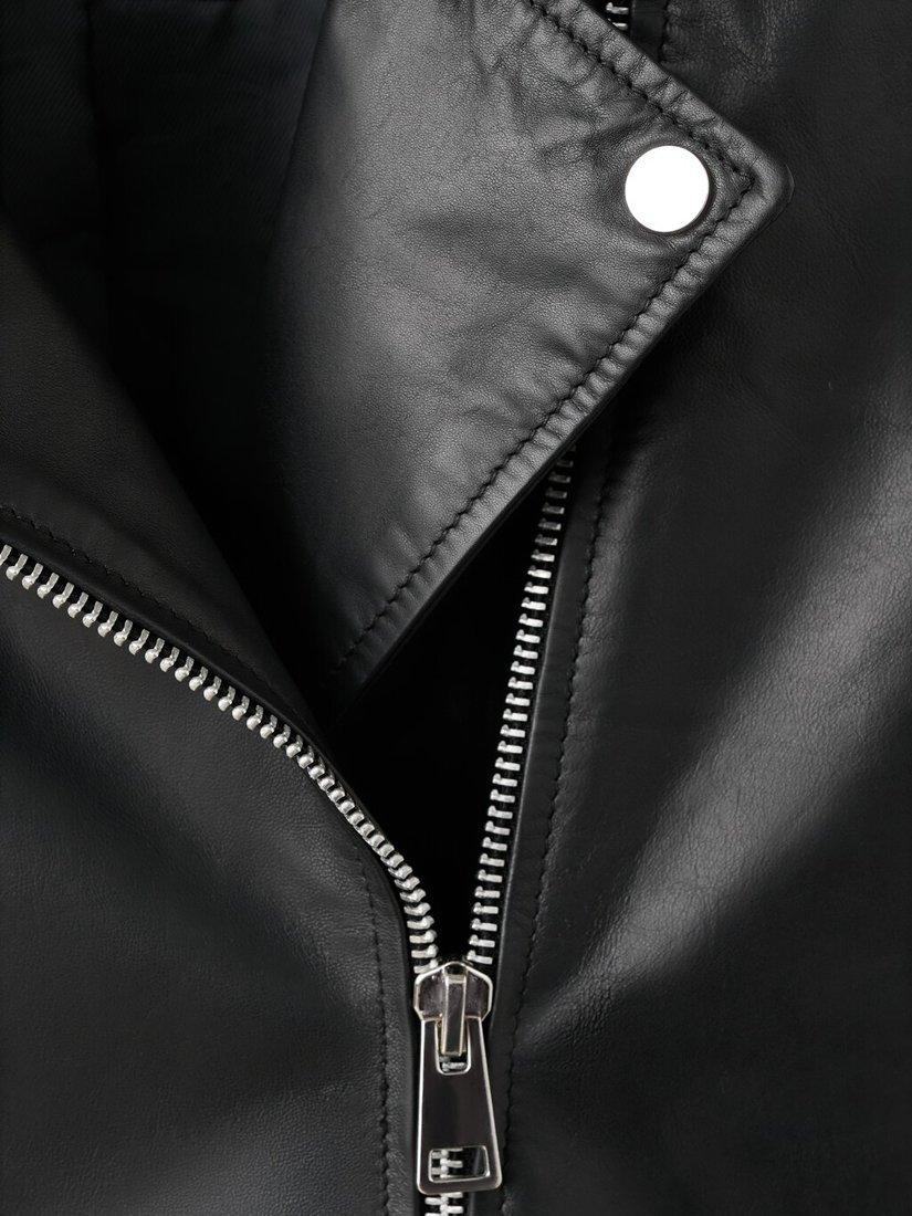 MangoPerfect Pure Leather Biker Jacket, Black