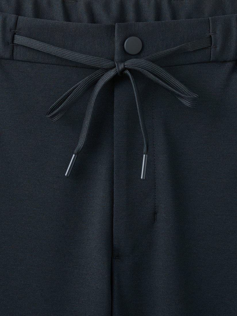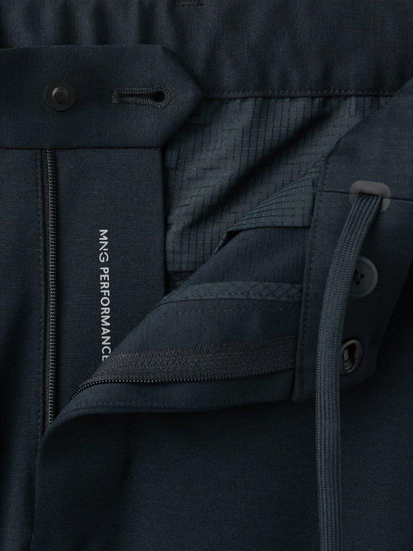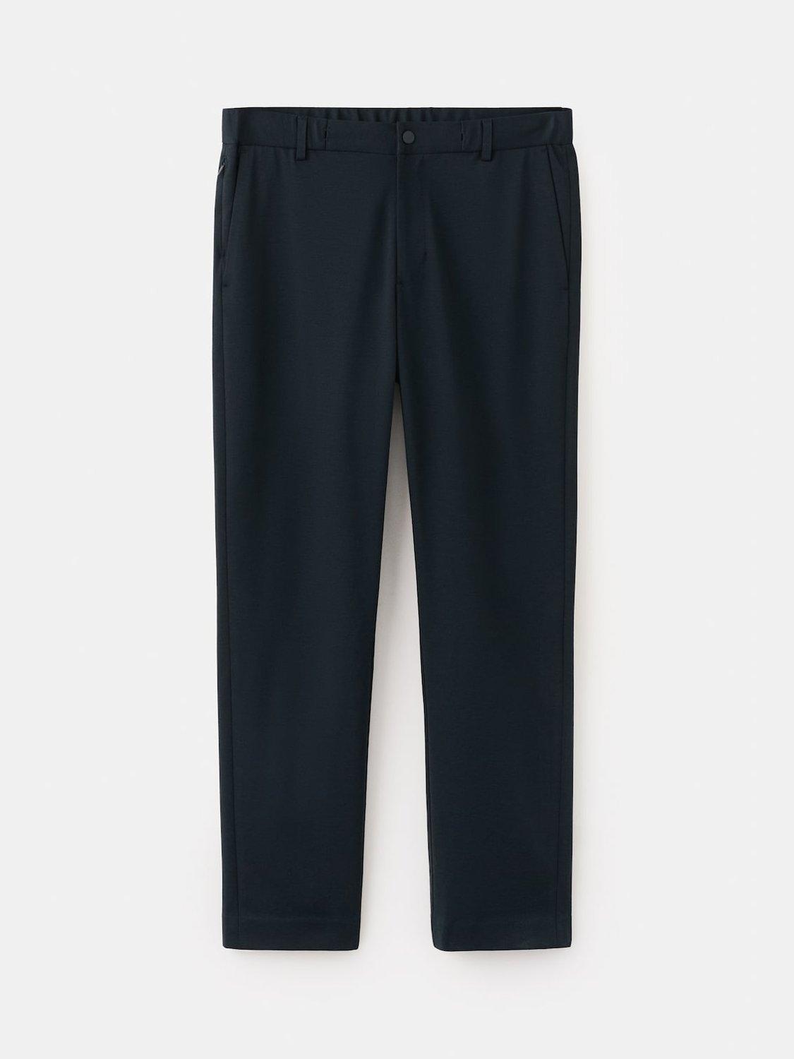 Streamlined mid-rise chinos that move seamlessly, offering a clean silhouette and breathable comfort for workdays, travel and weekend moments. Featuring an elasticated waistband with an external drawstring, a zip and press stud fastening, two side pockets and two back pockets with a zip closure.