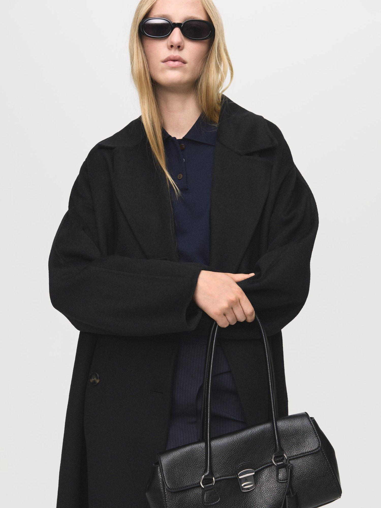 A smart, oversized overcoat. Its medium-weight wool blend keeps you comfortable while you embrace new ideas at work or out and about. Pockets add convenience, and the V-neck elevates your style.