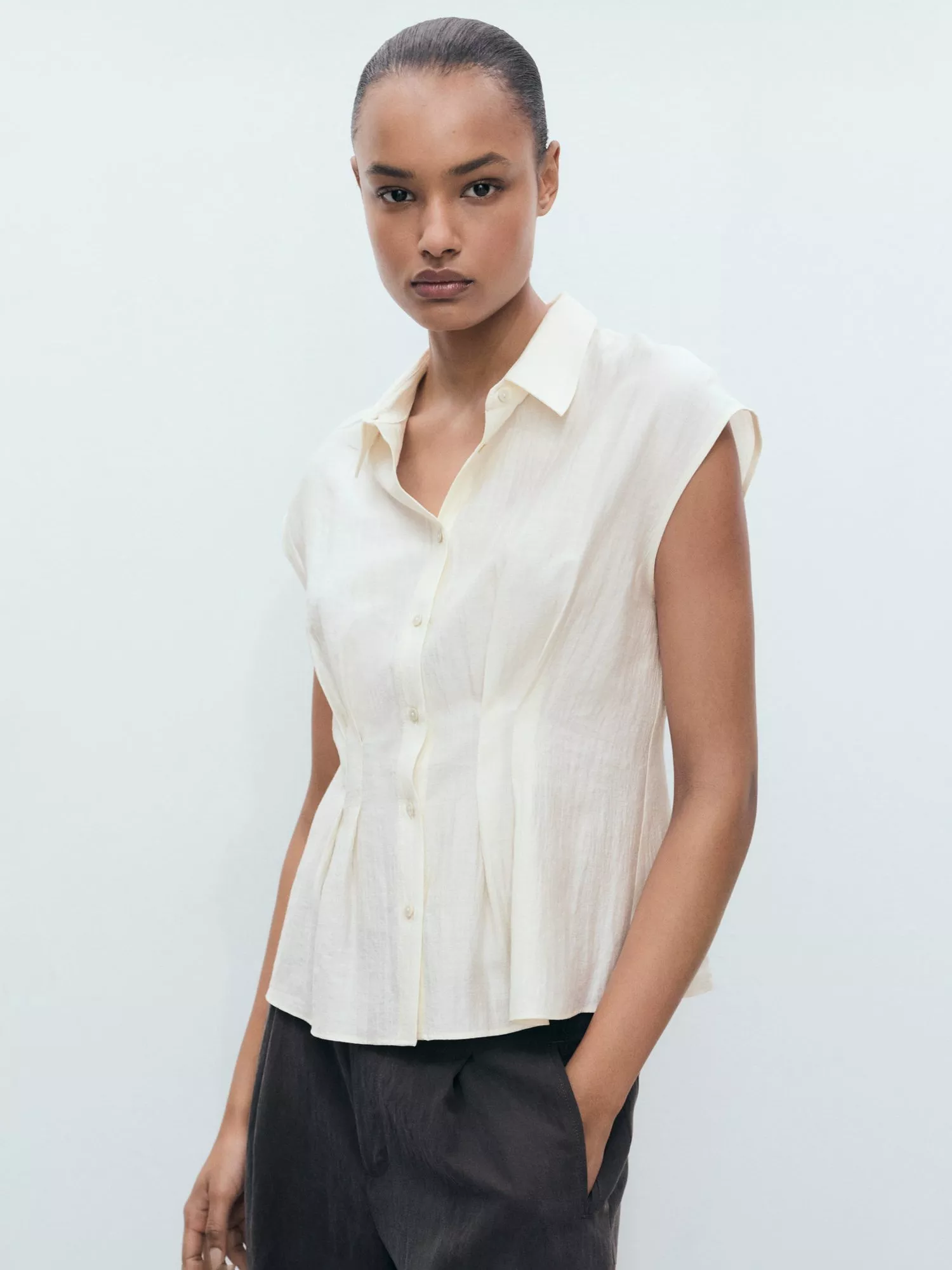 Mango’s cap sleeve shirt elevates everyday dressing with its refined collar and modern silhouette. Crafted from a soft viscose blend, this piece brings thoughtful detail and effortless style to your wardrobe.