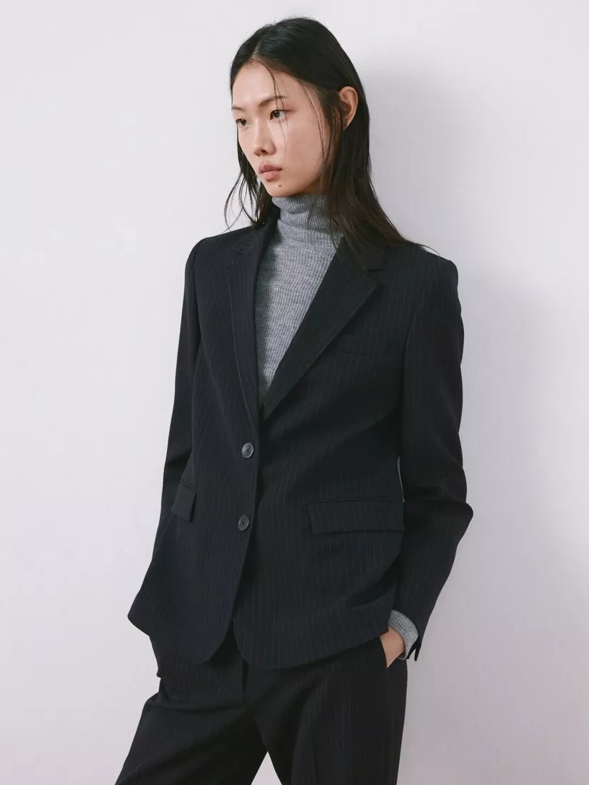 This pinstripe single-breasted blazer helps you stand out with smart details and a crisp silhouette. The comfortable fit and clever design make it perfect for smarter settings that call for a tailored touch.