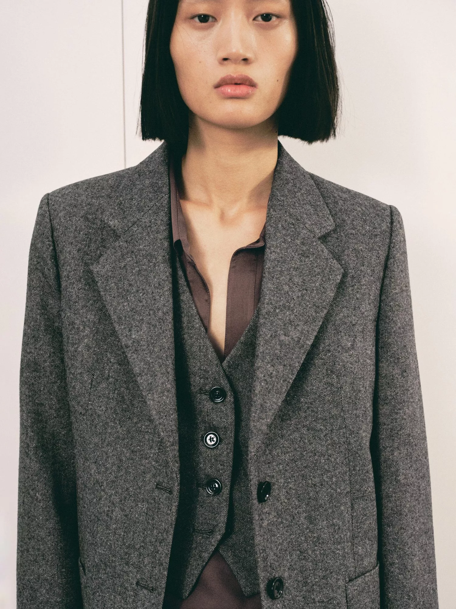 A smart, single-breasted blazer that brings sharp structure and easy comfort. Made from a soft blend with wool, it's versatile for work or casual plans, with practical pockets and a relaxed fit.