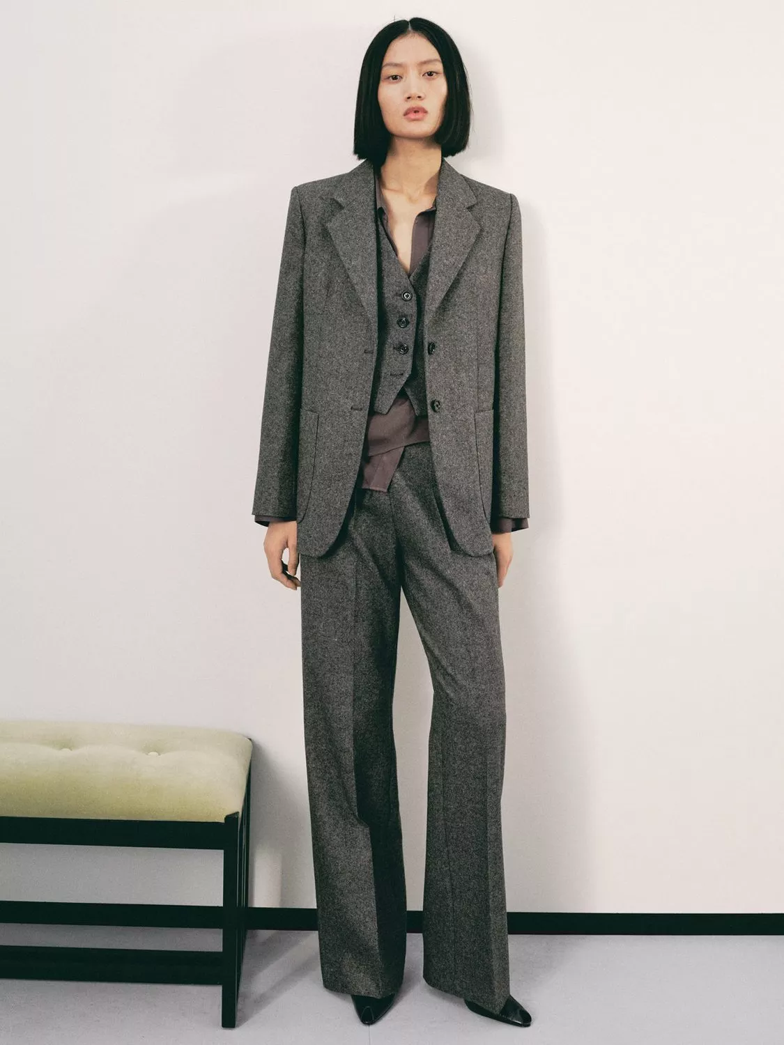 A masterclass in proportion, opt for this pair of straight leg trousers by Mango crafted from a wool-blend fabric. They feature a mid rise with a zip fly and a longer length.