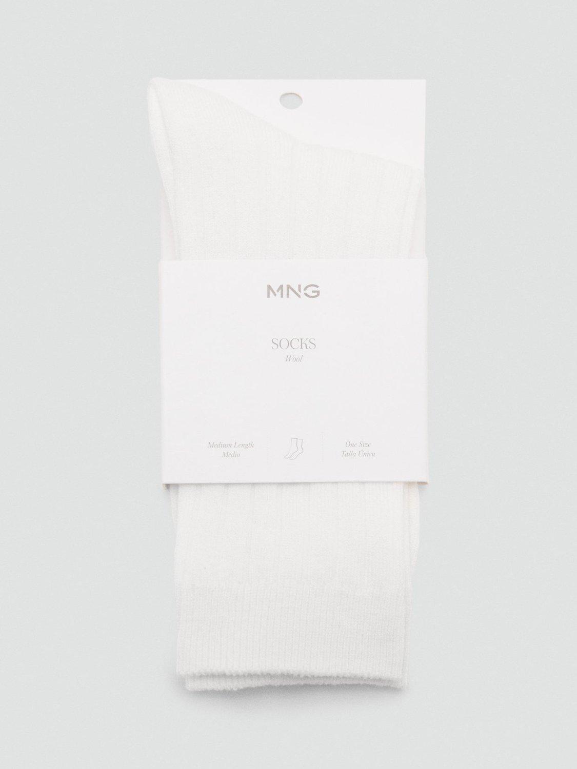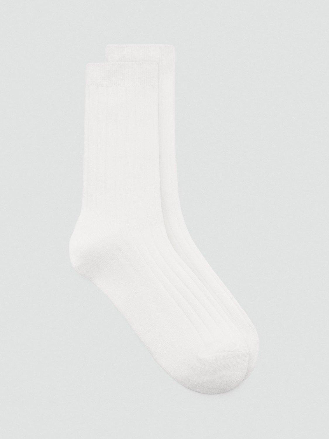 MangoPlain Rib Crew Socks, Light Beige, One Size