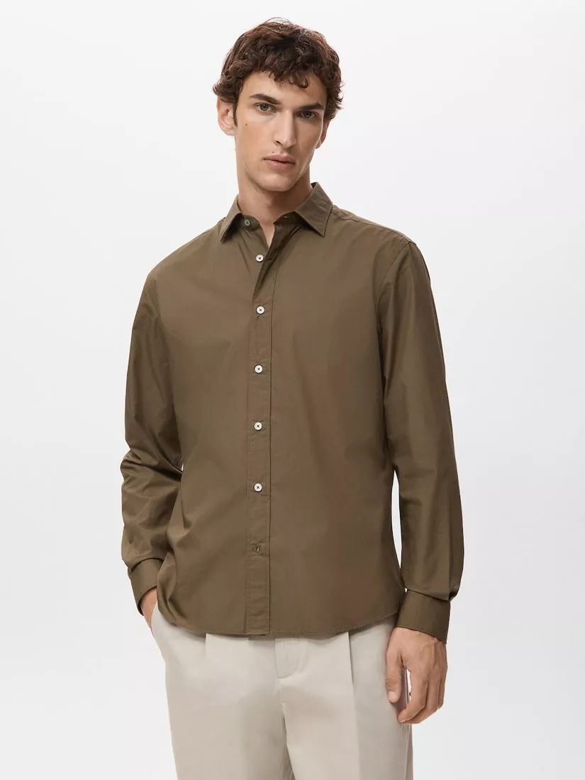 MangoPlay Cotton Regular Fit Shirt, Medium Brown