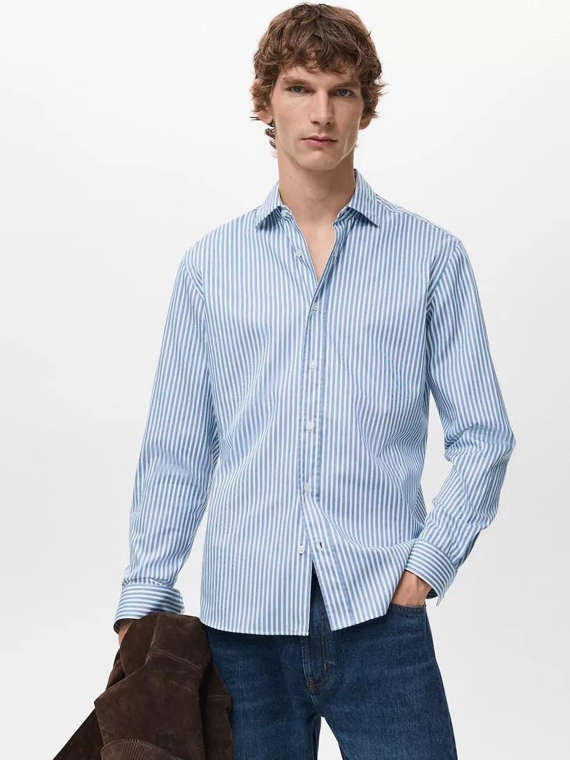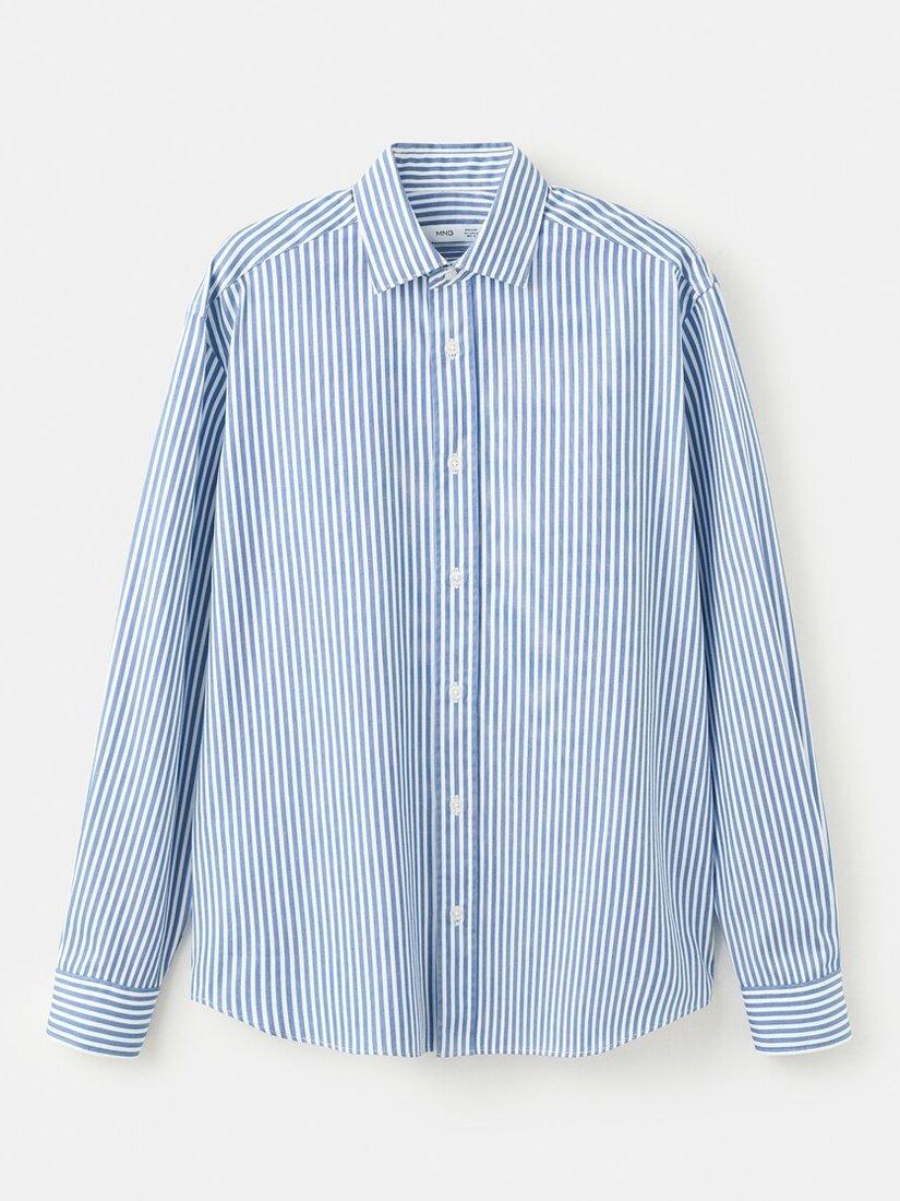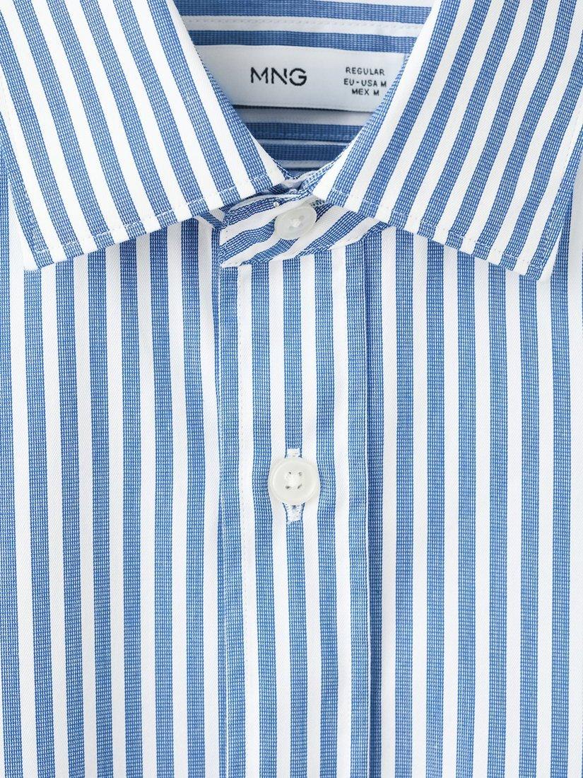 MangoPlay Cotton Stripe Regular Fit Shirt, Medium Blue