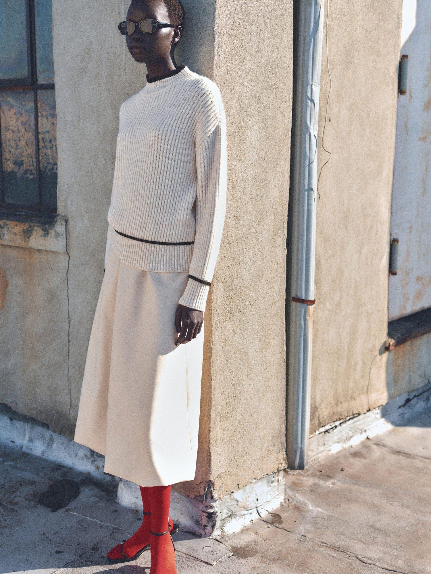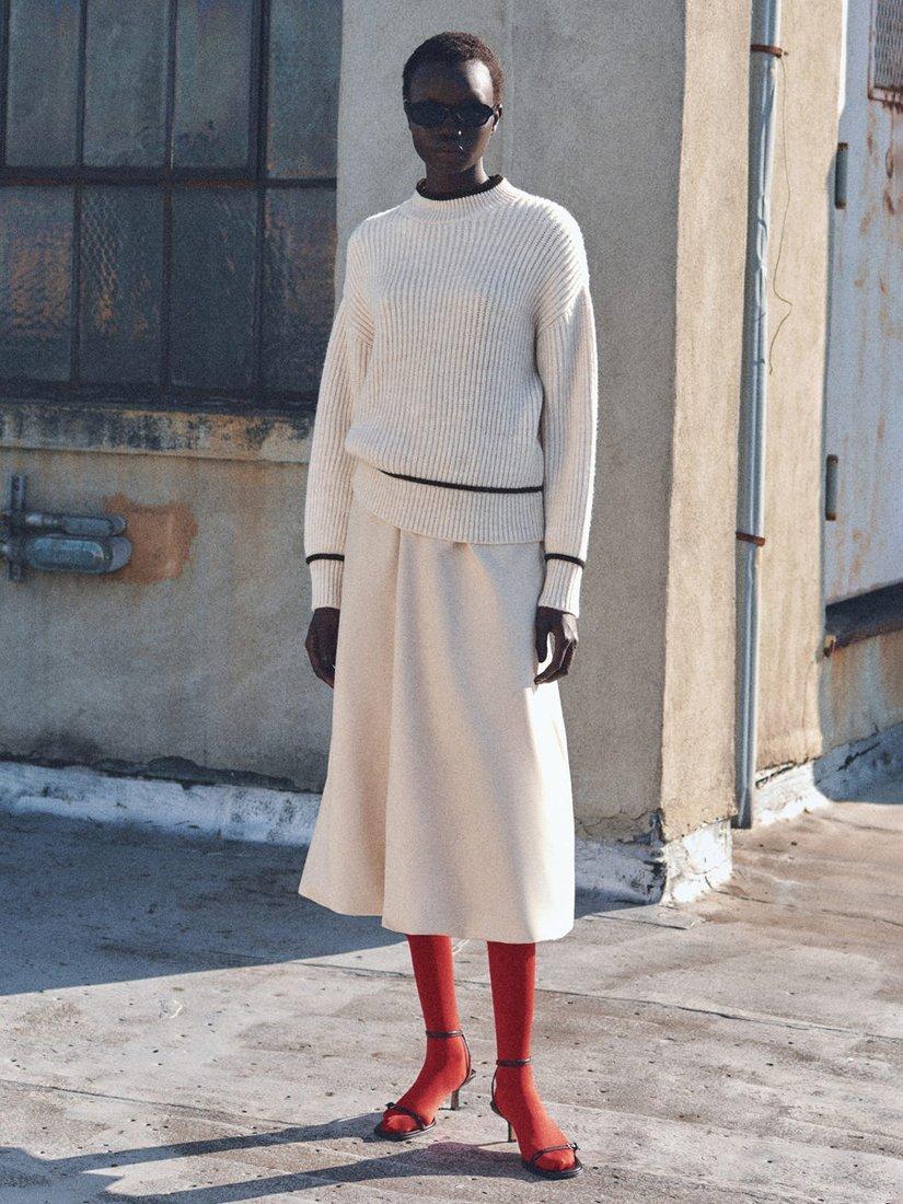 With a fuss-free round neck and long sleeves, this mid-weight jumper from Mango makes for lightweight wear in a smooth fabric.