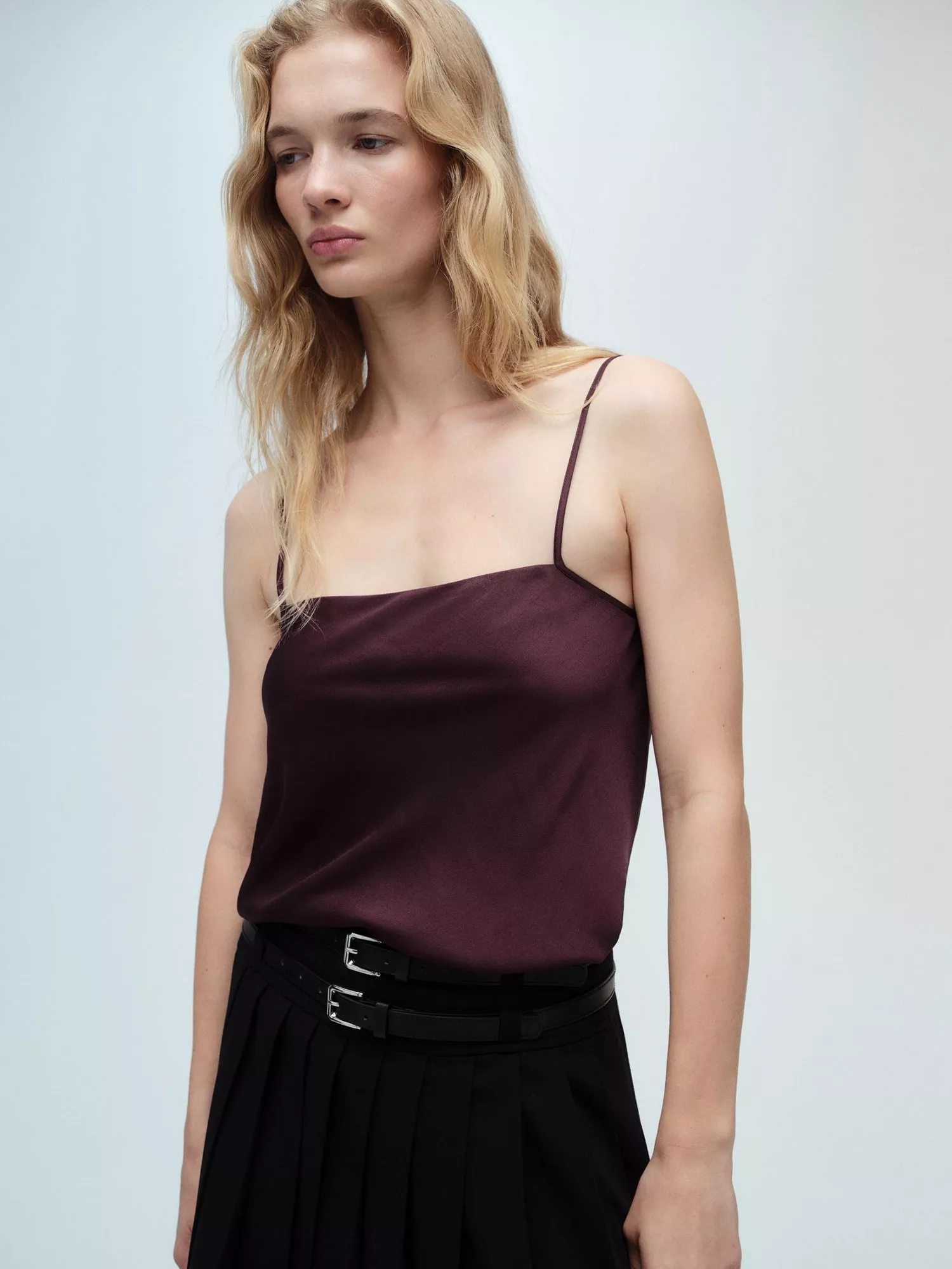 A faithful staple, this cami by Mango is designed with a square neckline, spaghetti straps and is made from a soft satin fabric.