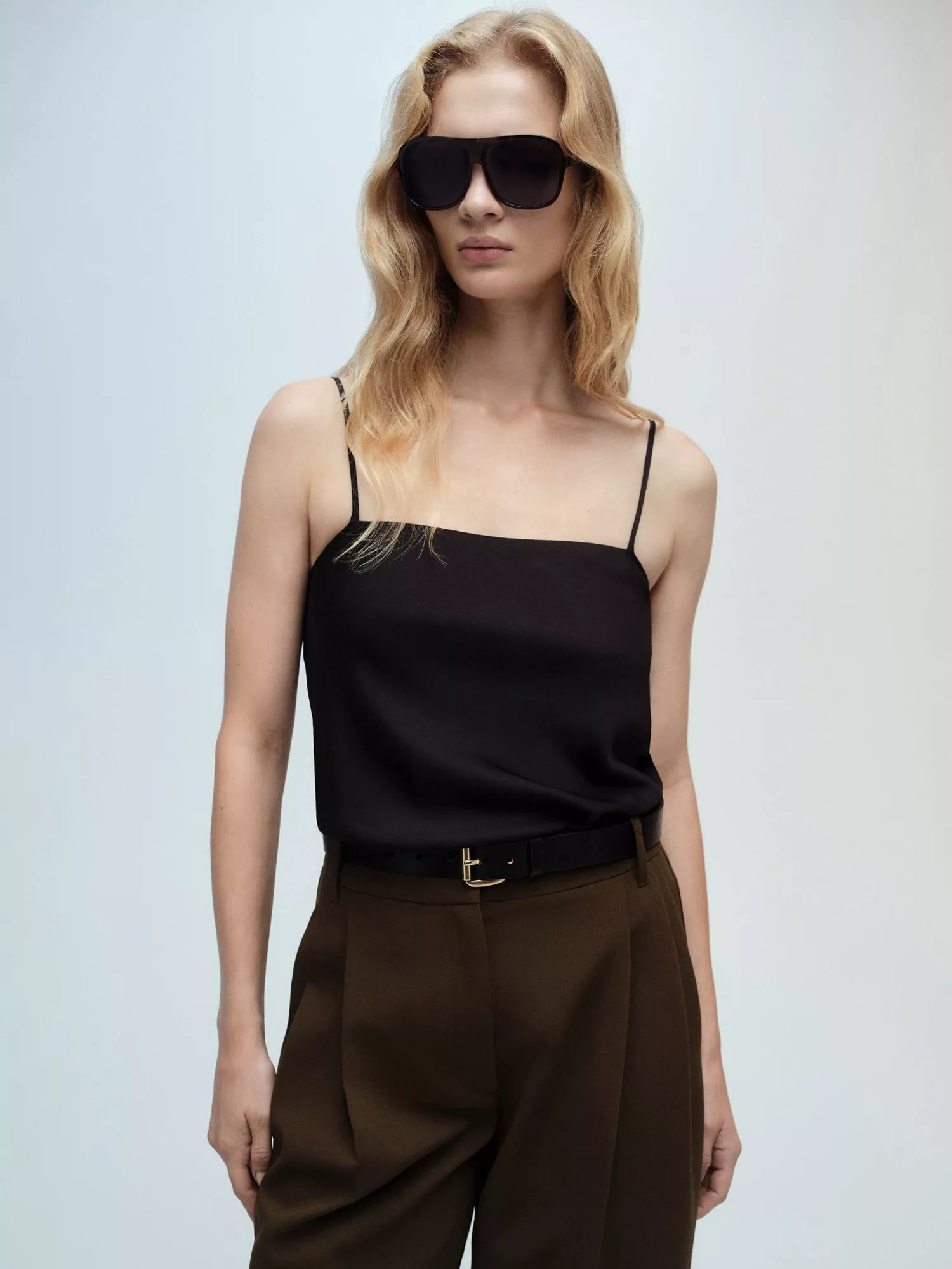 A faithful staple, this cami by Mango is designed with a square neckline, spaghetti straps and is made from a soft satin fabric.