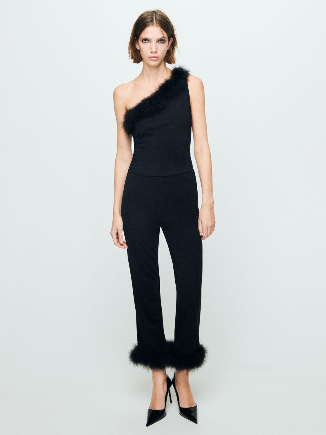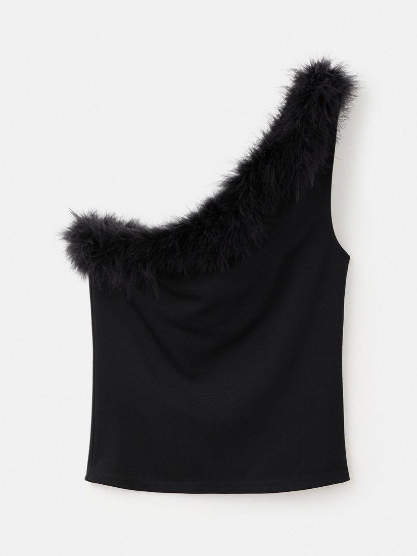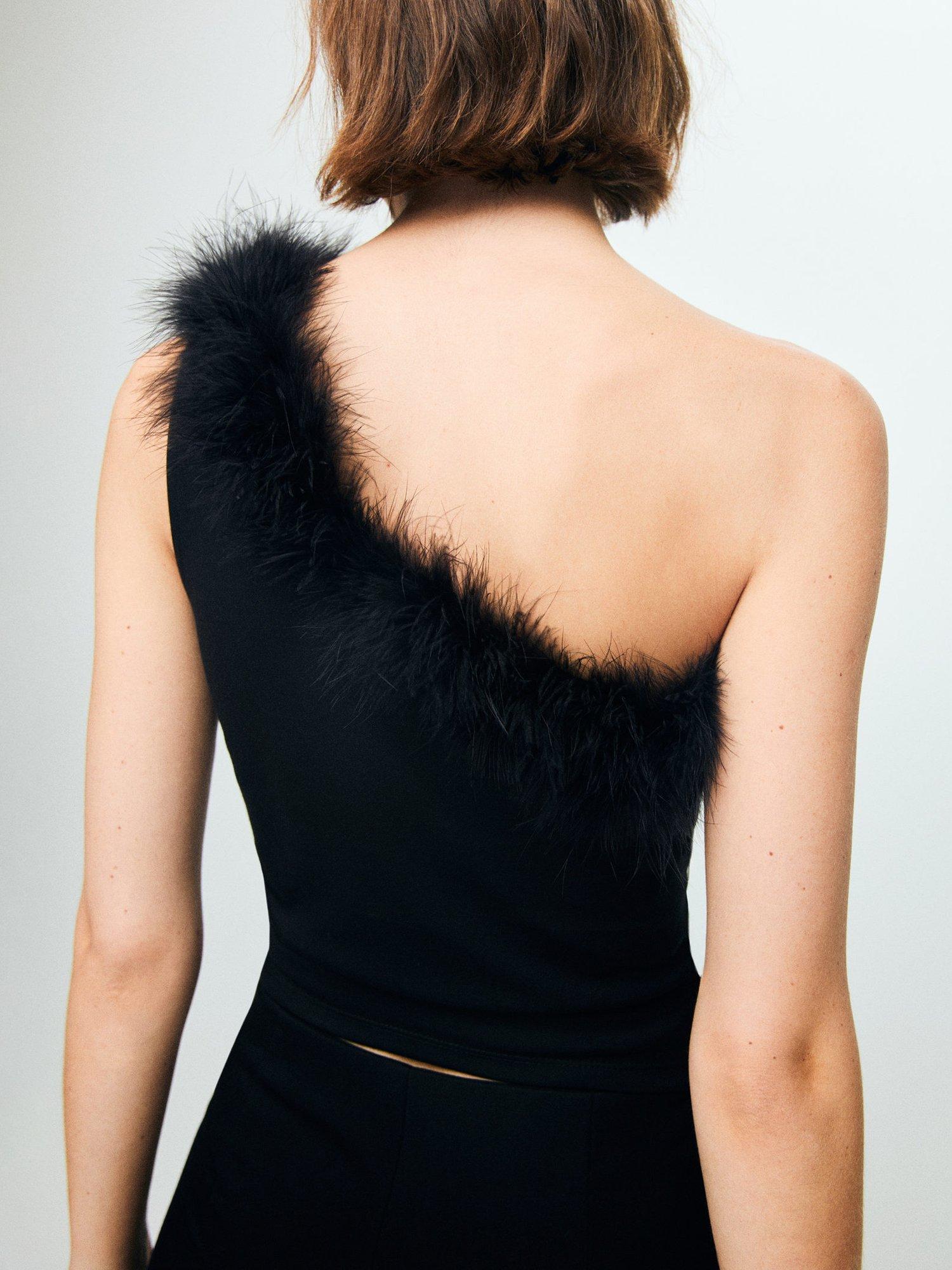 An sleeveless top by Mango, made from a soft viscose blend. With a faux fur trim asymmetric neck, it's designed to dazzle at every gathering.