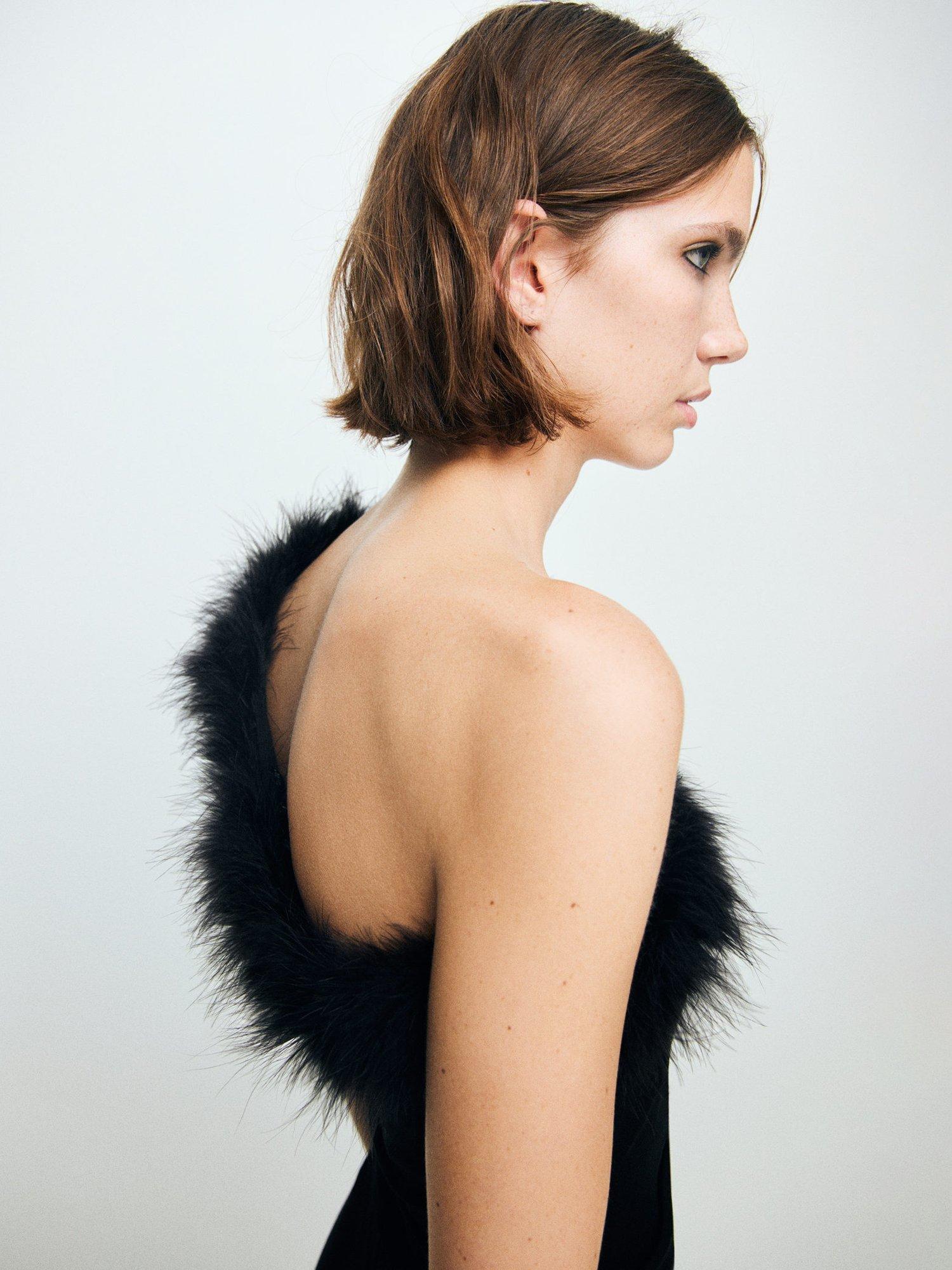 - 62% viscose, 34% polyamide, 4% elastane, Trimming: 100% turkey feather