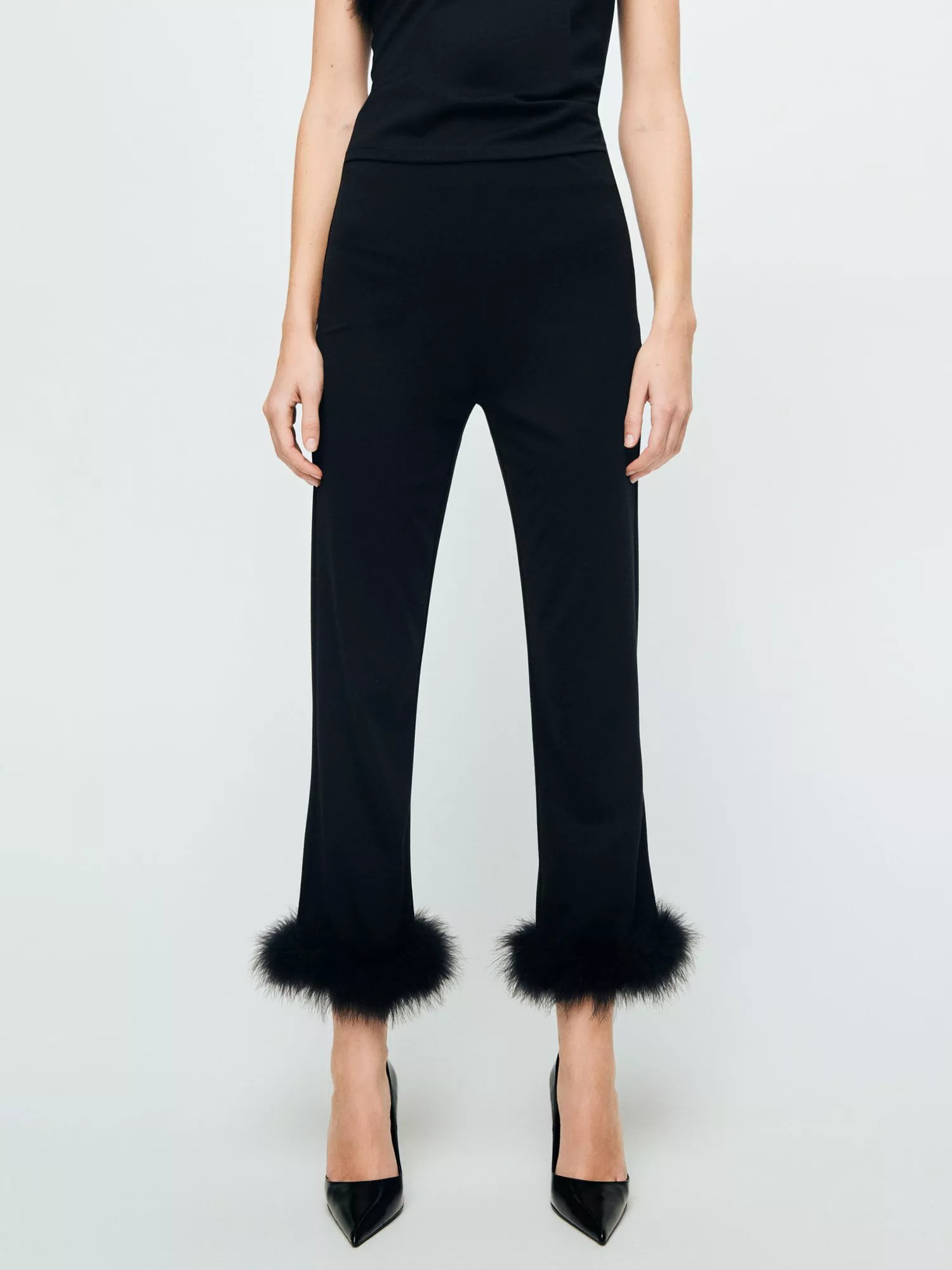 A pair of s-leg trousers from Mango with a playful ruffle trim. They are designed to sit mid rise with a concealed zip fastening and hems that fall to a regular length.