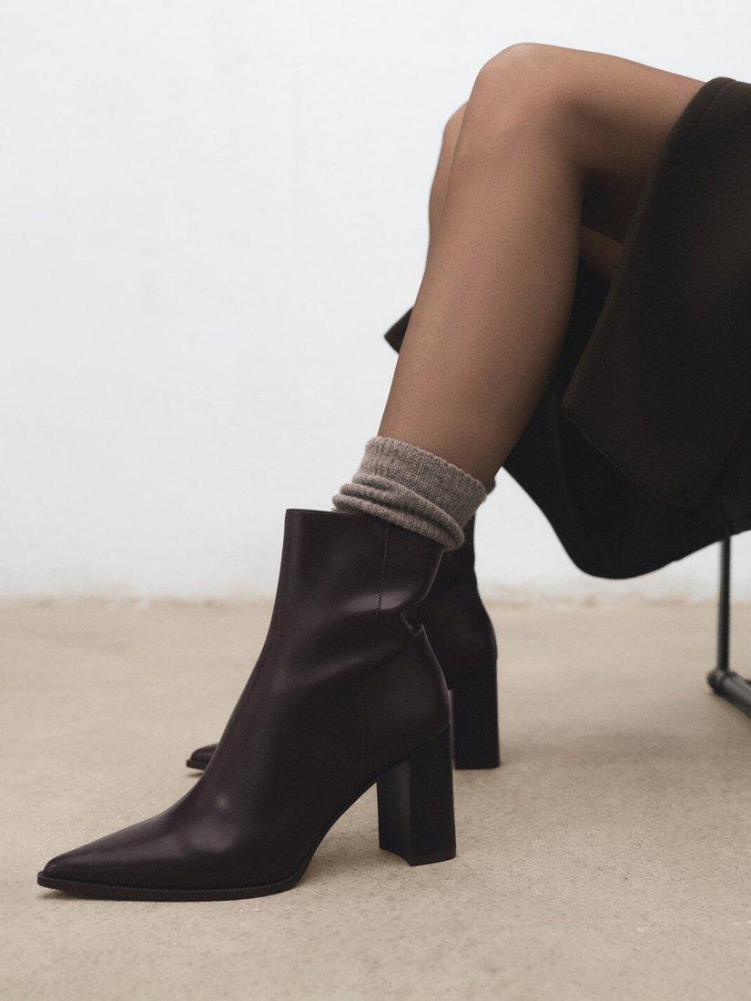 Mango ankle boots, designed with a pointed closed toe, a sturdy block heel, and a practical zip fastening. A year-round staple for striking day or evening looks.