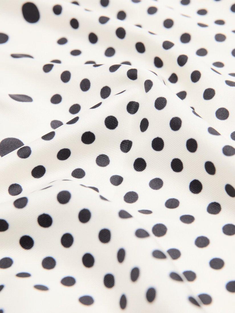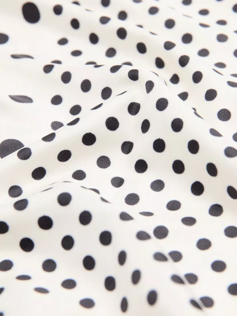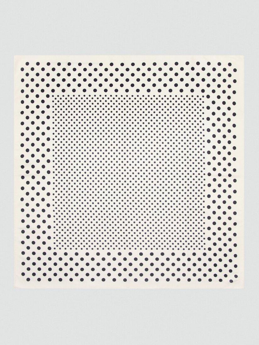 A square polka dot scarf. Soft and lightweight, it adds a playful twist to your look.