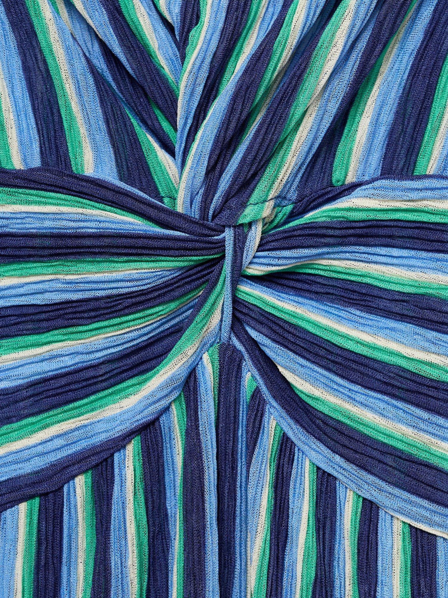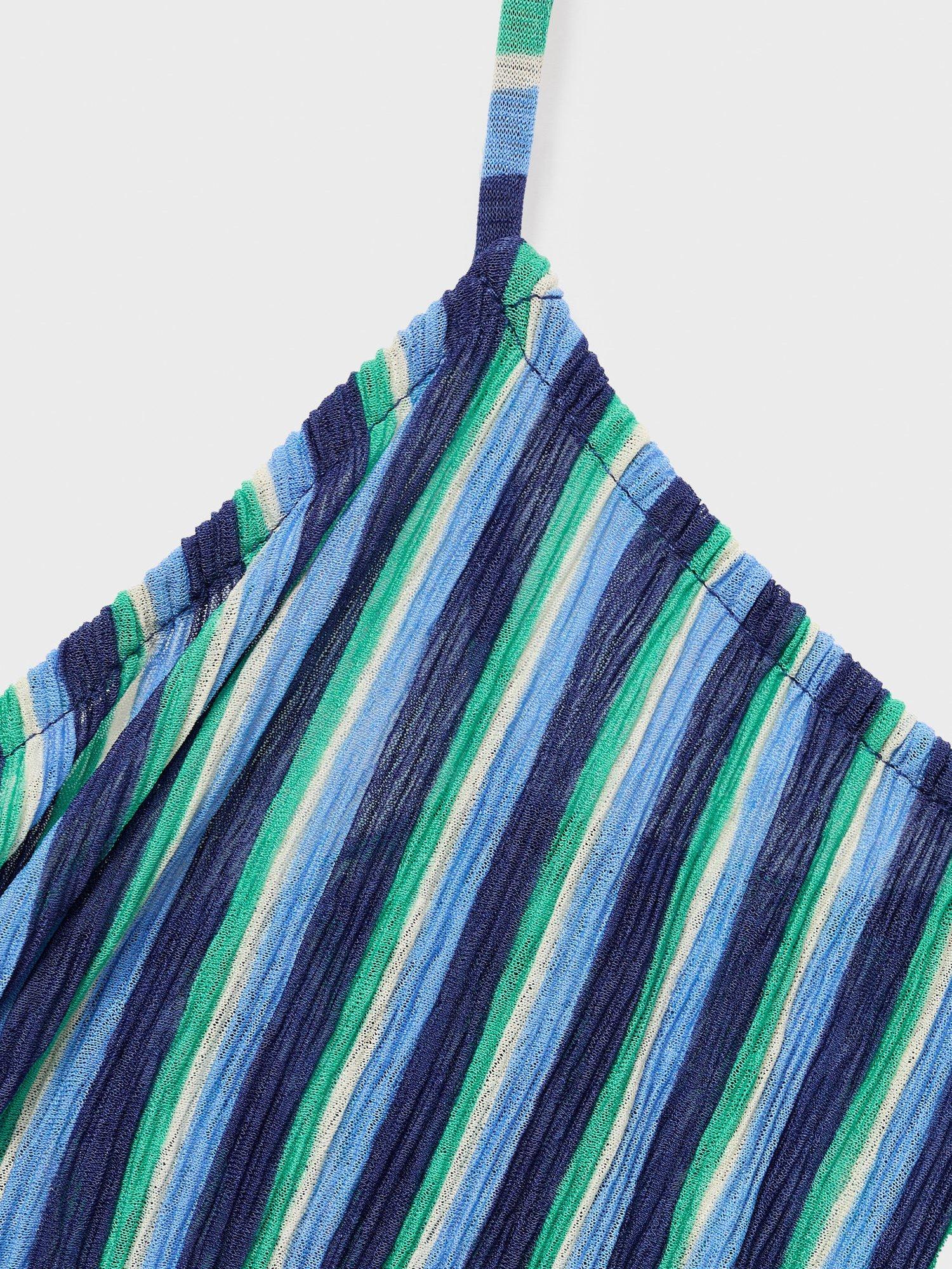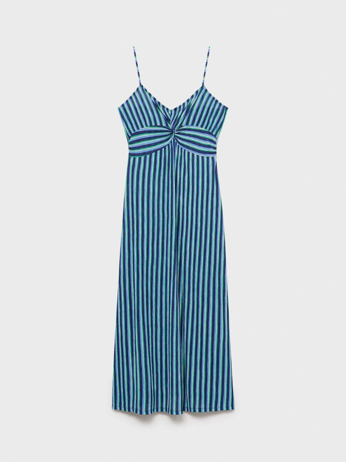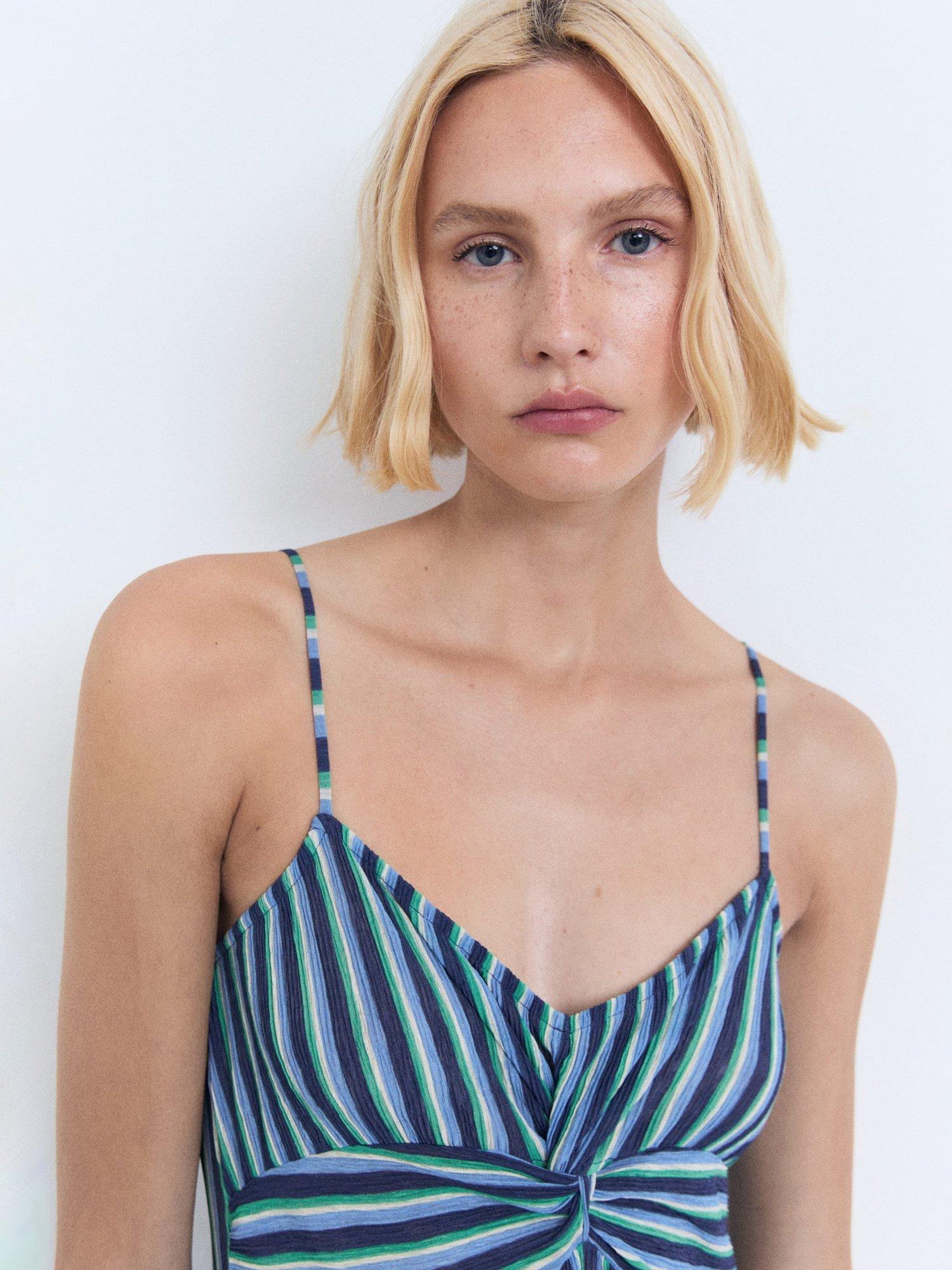 Flattering in all the right places, this slip-on midi dress from Mango features a soft v-neckline with a gathered detail, adjustable thin straps and all-over stripes.