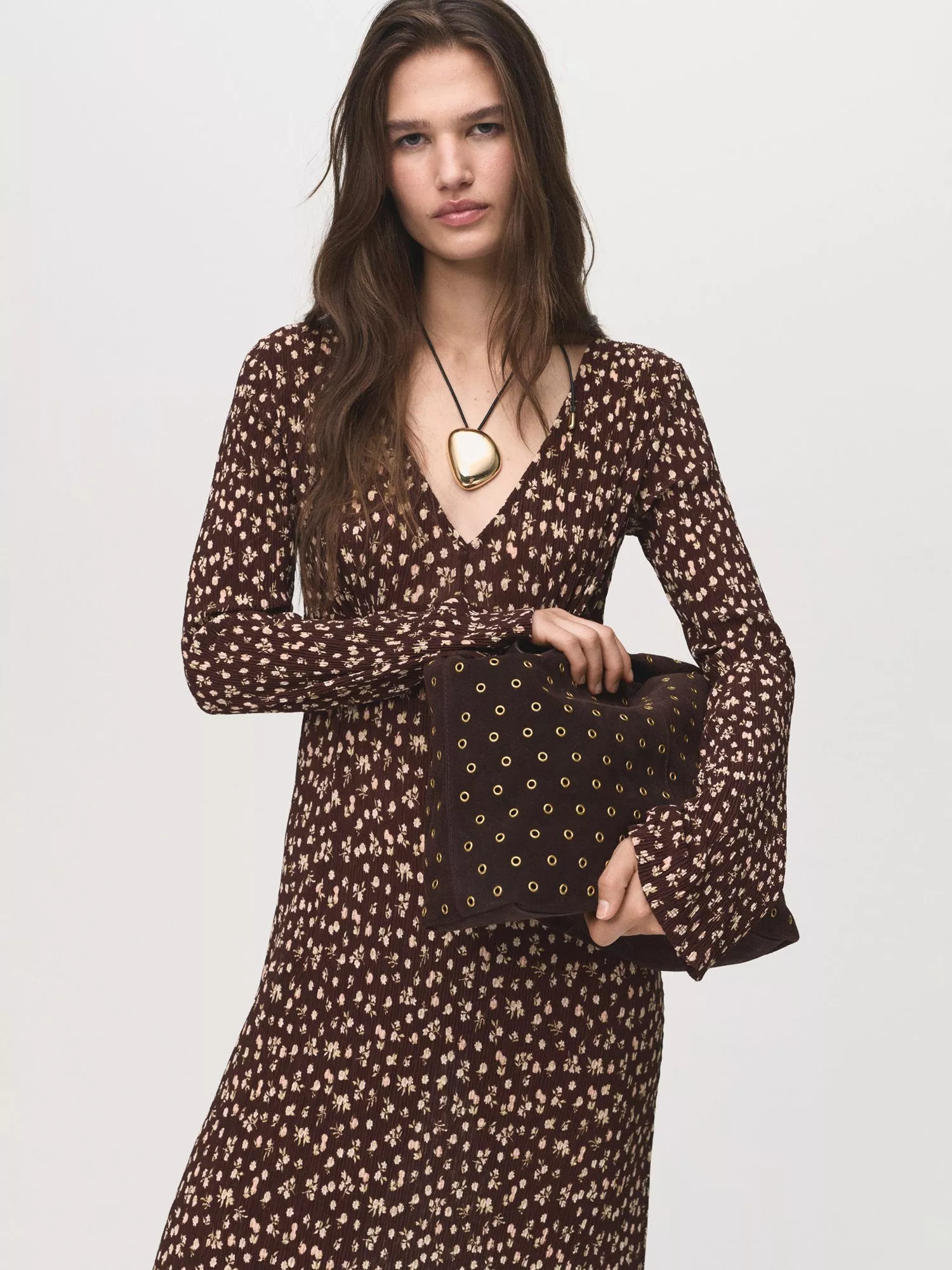You can't go wrong with a straight silhouette. This long-sleeved midi dress by Mango features a V-neck and an always on-trend floral print.