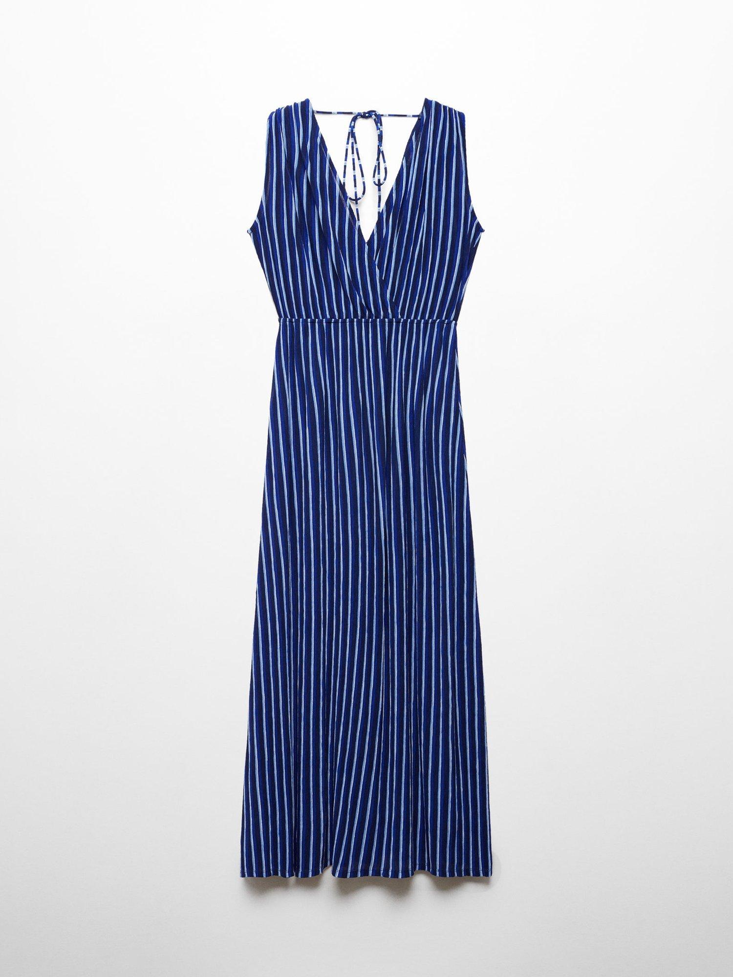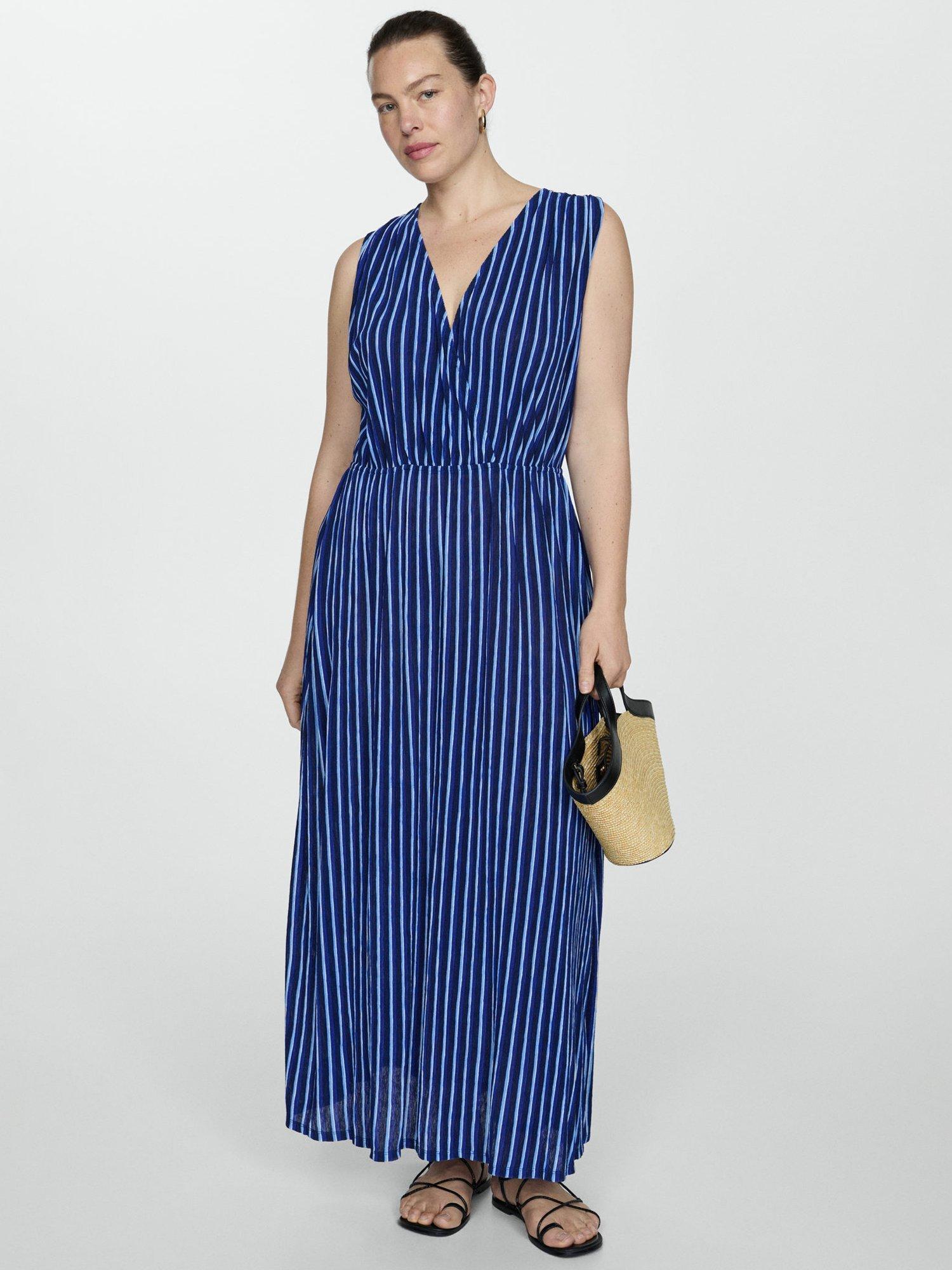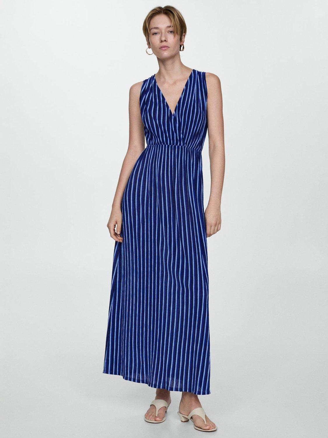 Designed in a fuss-free A-line style, this maxi dress from Mango is cut with a v-neckline, elasticated waist and vertical striping.