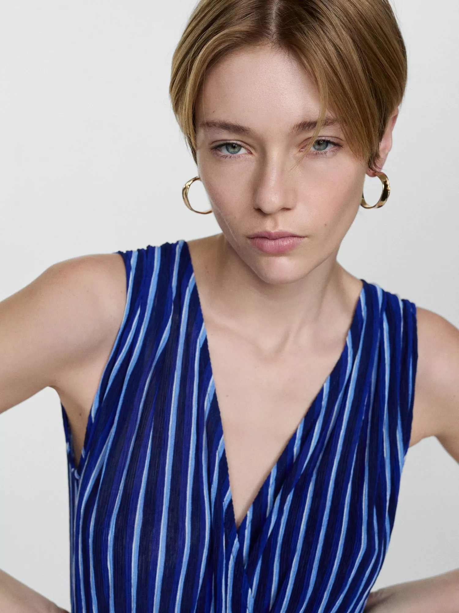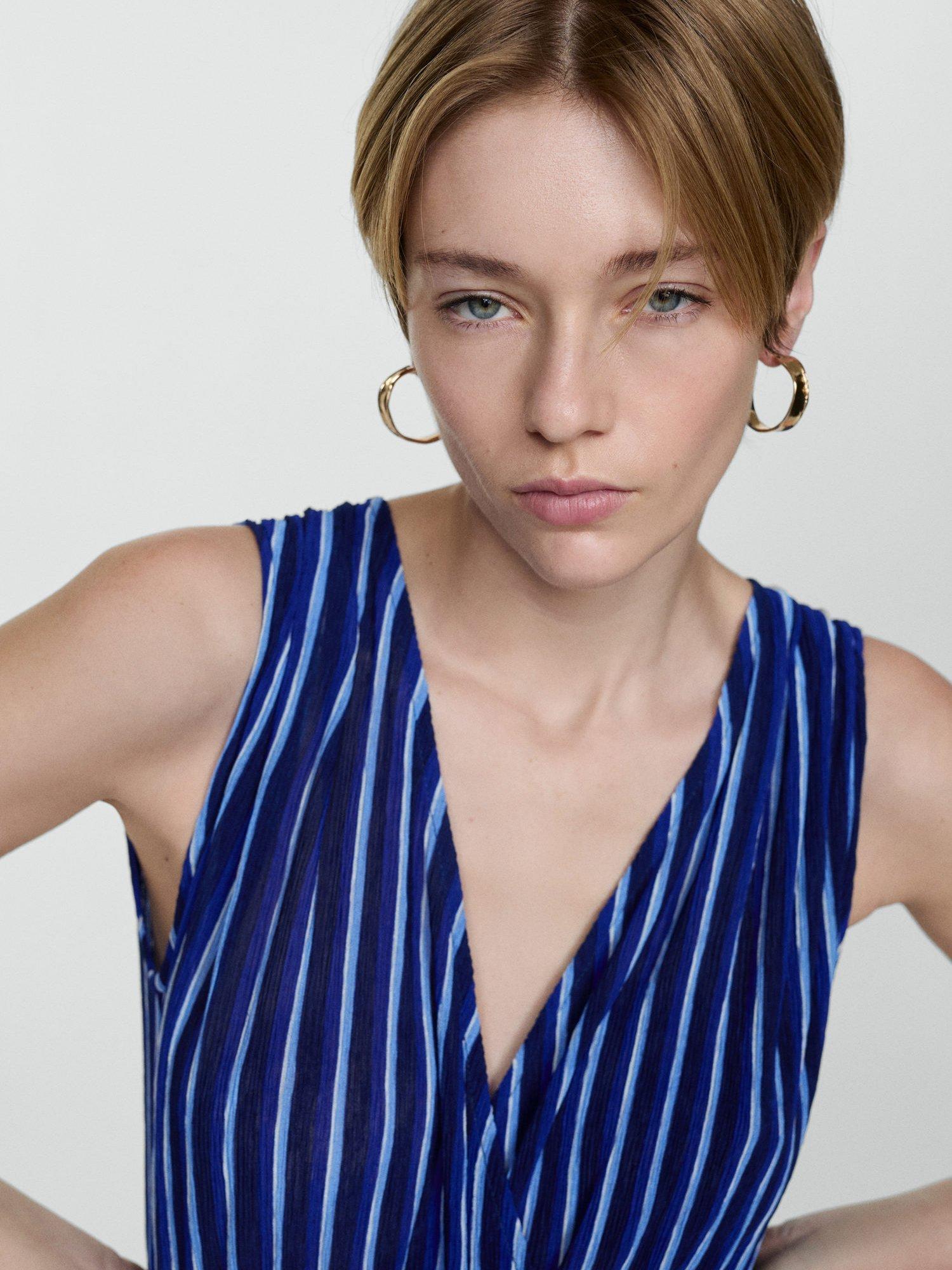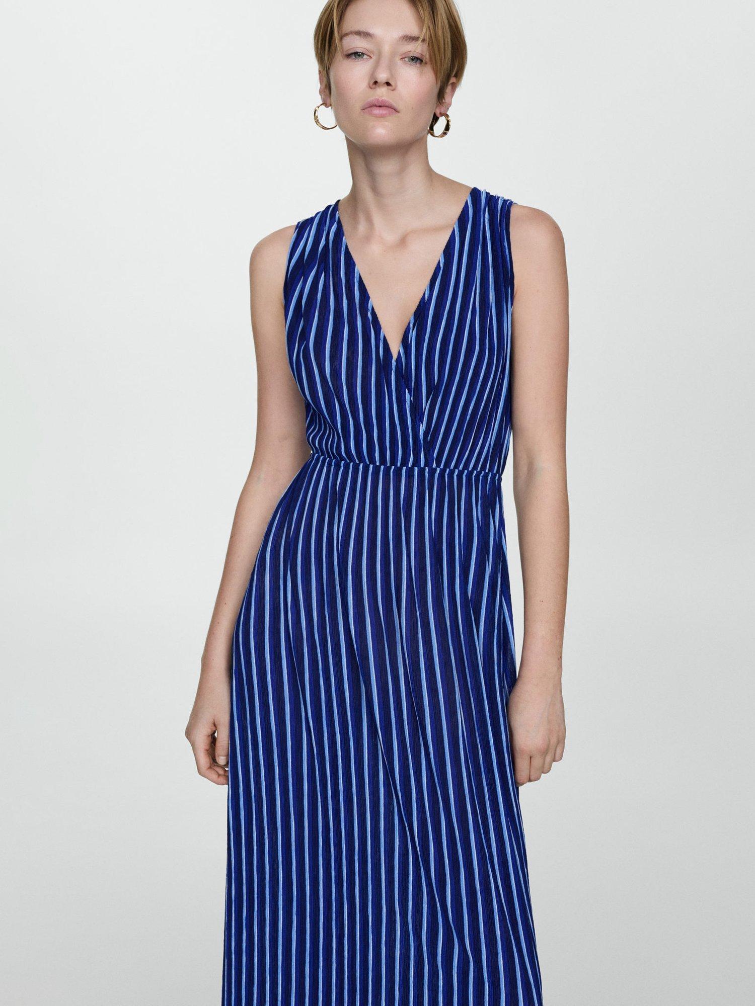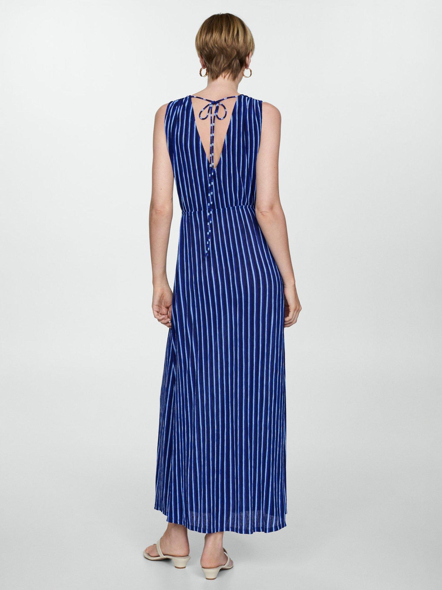 Designed in a fuss-free A-line style, this maxi dress from Mango is cut with a v-neckline, elasticated waist and vertical striping.