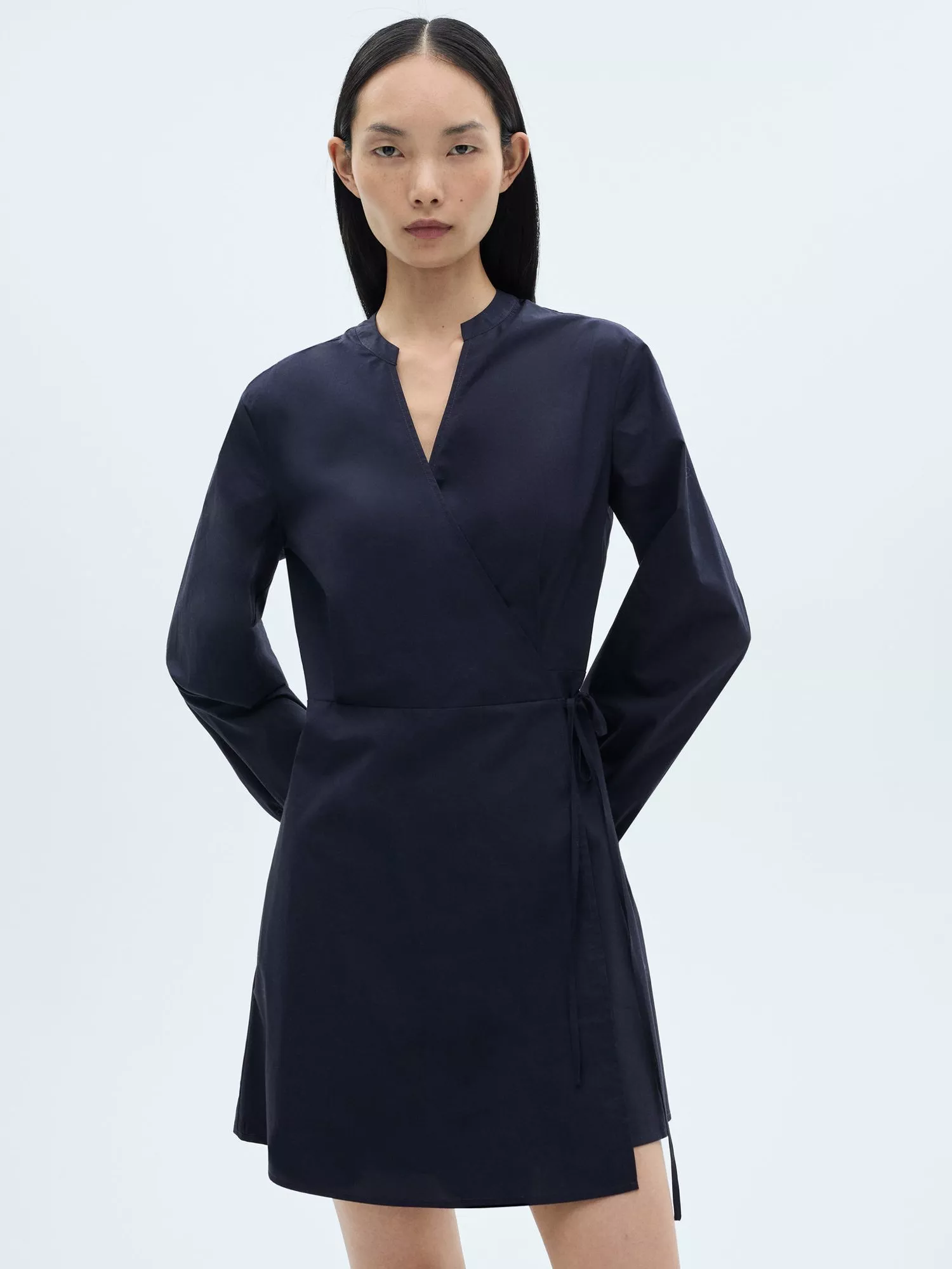 Defined by a flattering wrap shape, this mini dress from Mango is crafted in lightweight, breathable cotton. Carved out by a deep v-neckline and three-quarter length puff sleeves, it comes without pattern or print so you can set your imagination and creativity free when it comes to accessorising.