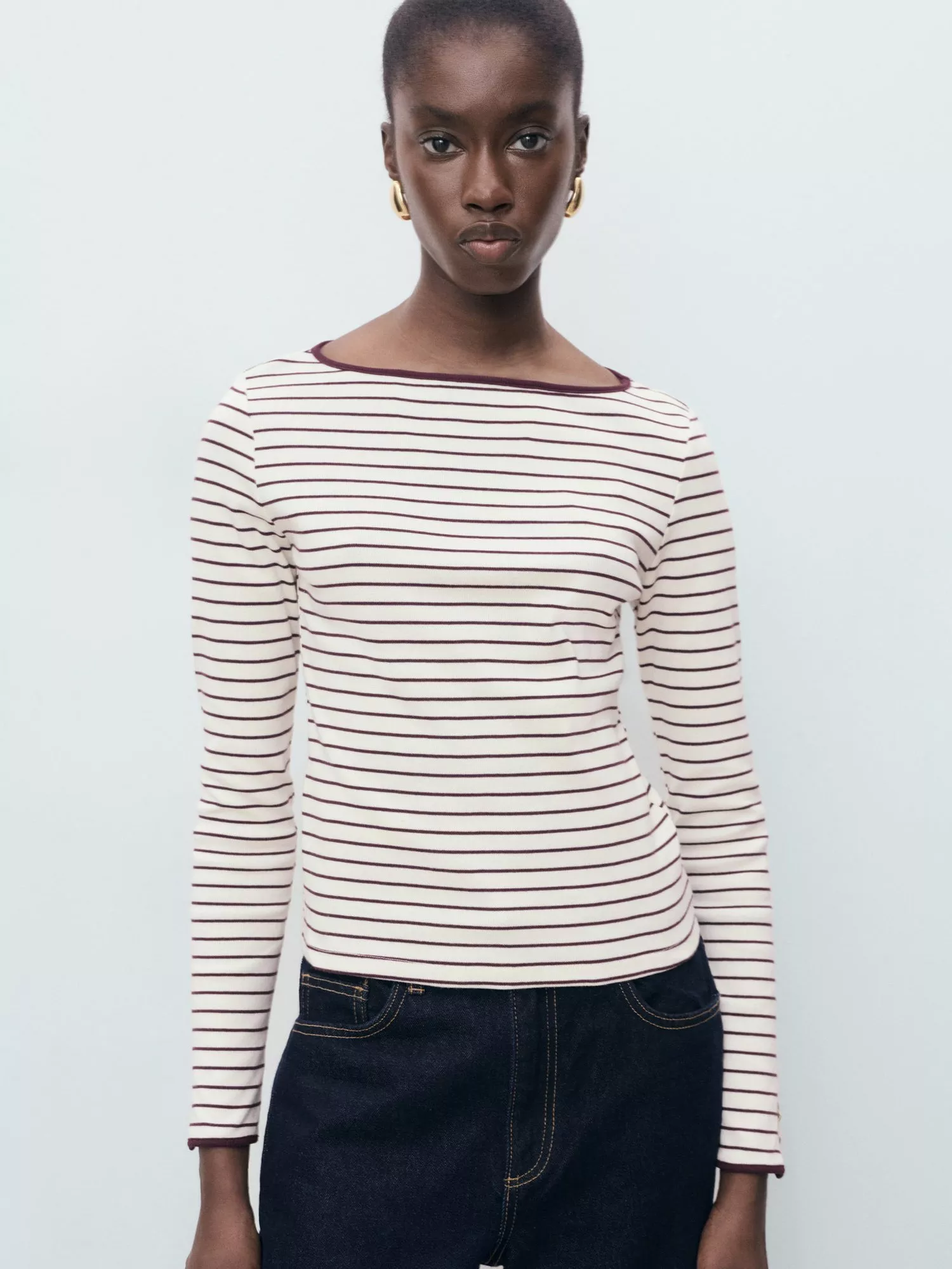 This T-shirt by Mango is sure to be a wardrobe favourite with its colour contrasting stripes. Cut with a round neckline and long sleeves, it is light and breathable in cotton, great for everyday.