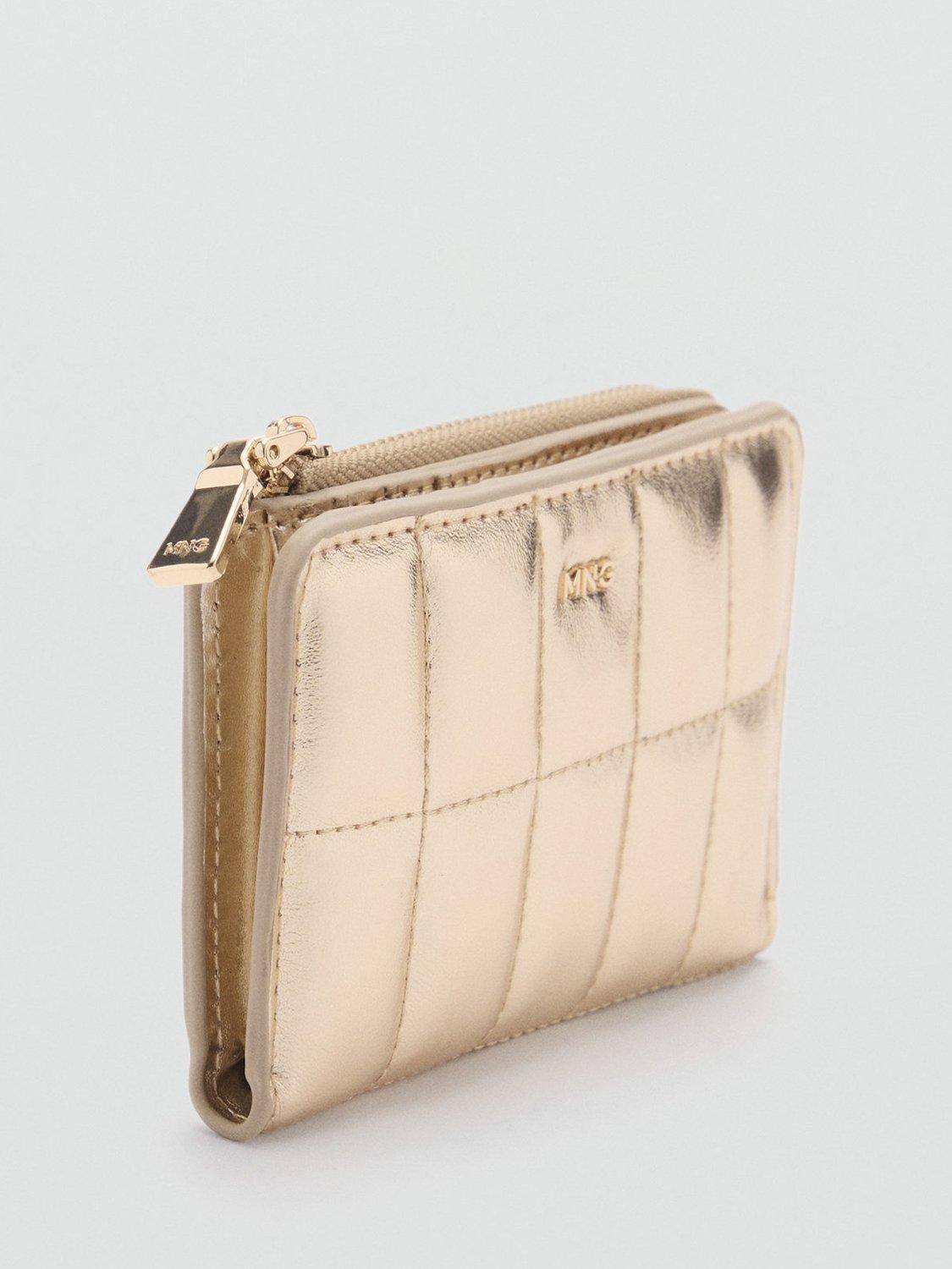 Made in quilted metallic faux leather, this purse from Mango opens to reveal plenty of card slots and a zipped pouch for coins.
