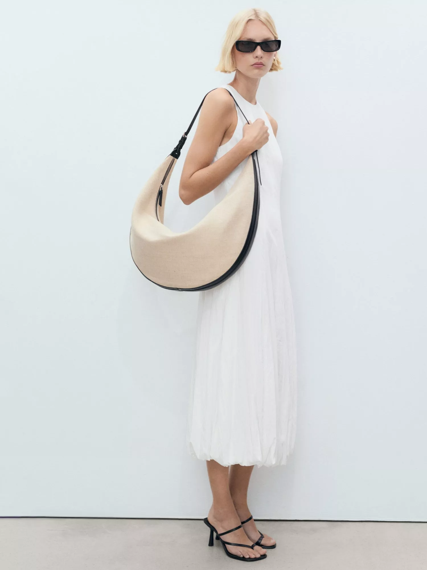 The Pumpkin midi dress from Mango is cut in a sleeveless design, with side pockets and a zip fastening to reverse. Noting a flowing A-line design to showcase its versatility, it comes without a pattern or print, so you can set your creativity free when it comes to accessorising.