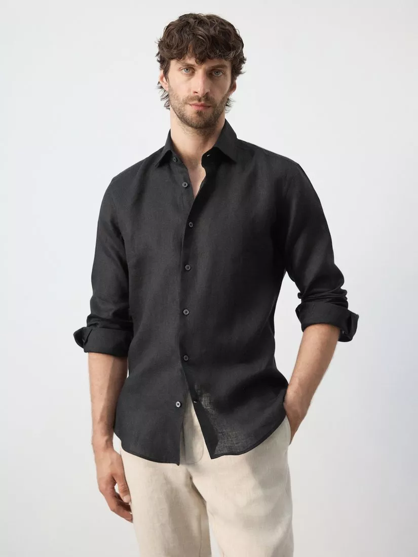 This long-sleeve shirt is made from linen, offering a crisp finish and breathable comfort for day-to-evening wear. Designed with a classic collar and regular cut, it brings relaxed structure to smart or casual looks in any season.