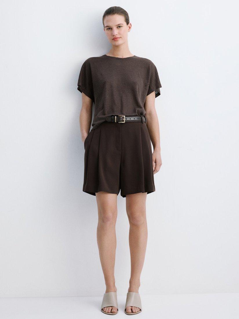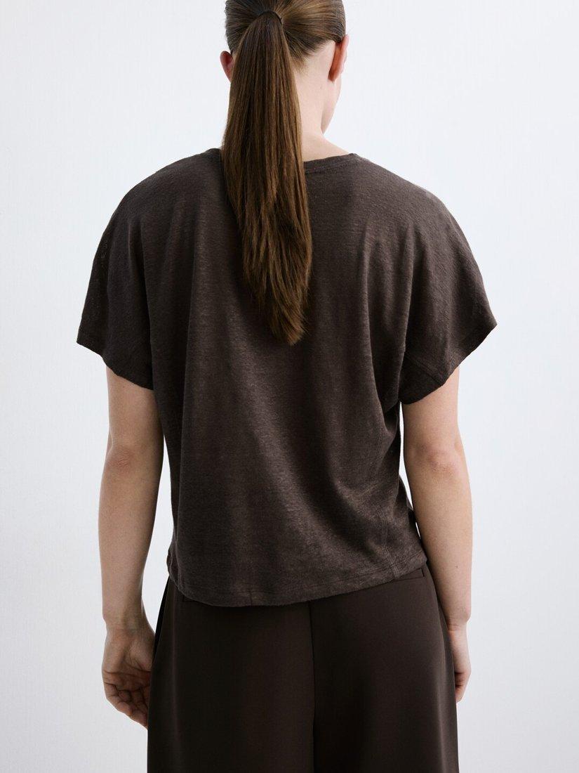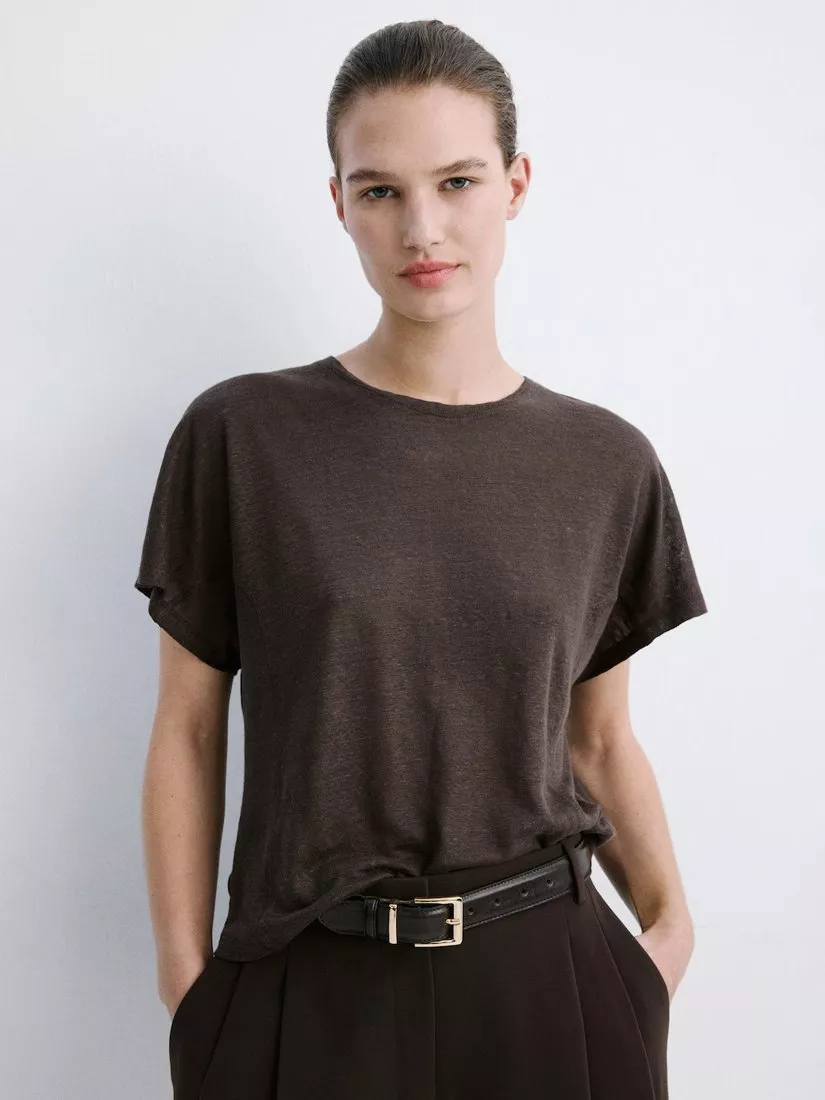 A T-shirt from Mango that's lightweight and breathable in pure linen. Featuring a round neck and short sleeves, it comes in a mix-and-match ready plain colour. Effortless style for daily dressing.